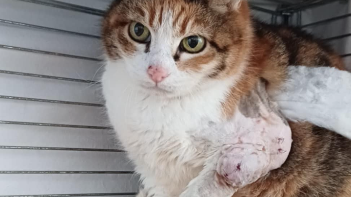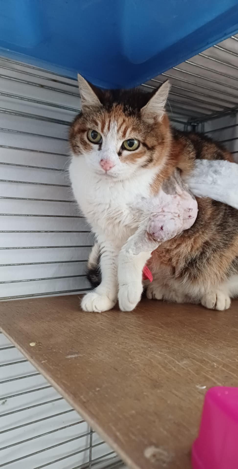 Ho provato a mettere la gabbia diverse volte, ma ho capito subito che sarà un'impresa a catturarla. Alla fine, quando mi ha lasciato Oscar ho potuto dedicarmi completamente alla sua cattura. E alla fine dopo un mese e mezzo di preparativi e costanti postamenti sono riuscita a catturarla. Ma alla prima visita emerso un quadro clinico preoccupante ... un colpo al cuore... sospetto di fibrosarcoma che è stato confermato con referto istologico delle biopsie fatte. Fibrosarcoma è un tumore maligno, abbastanza agressivo, che purtroppo può avere recidiva. Parlando con vari veterinari e chirurgo/ ortopedico siamo arrivati alla conclusione che l'unica strada per capire bene la situazione di Cleo e valutare la possibilità e se ha il senso di fare un intervento ( nel suo caso amputazione del arto anteriore) è fare la TAC.