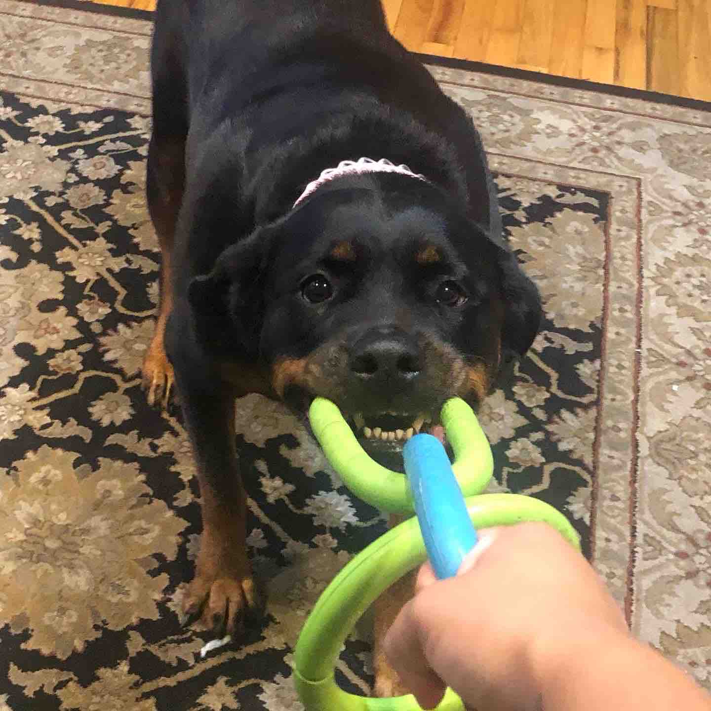 Cleo is a loving, charismatic, full-of-personality Rottweiler from NYC. She enjoys walks outside, playing with her toys, and collecting random things she finds on her walks. She came into our lives when she was a puppy and every day puts a smile on our faces. Despite her size, Cleo is a sweetheart who wins the heart of everyone she meets-even those who are first intimidated by her size. She is a big cuddler and loves climbing in everyone's lap often unaware of how big she actually is. Above all Cleo is a part of our family and we are not ready to say goodbye to her just yet as she has so much life and strength left in her. Even now she continues to smile at us and try her best to get around.