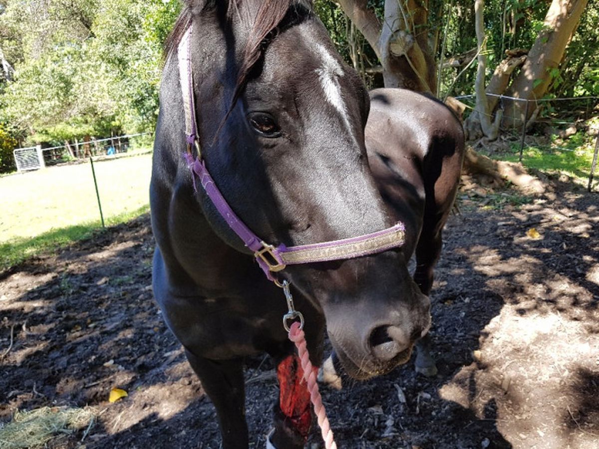 She had been found in the paddock with a horrific injury. She had degloved her thigh down to her knee and had a deep cut down to the bone approx. 30 cm long.