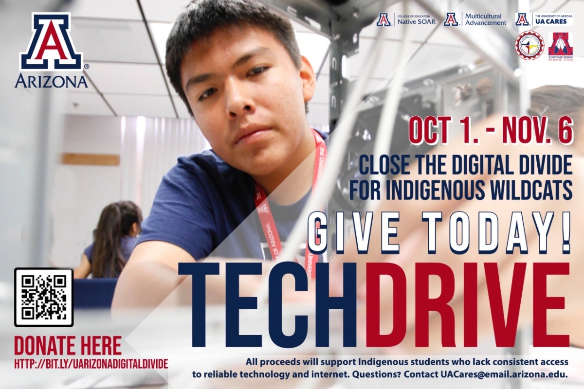 UPDATE: We are BLOWN AWAY by your incredible generosity! In just two short weeks, we surpassed our initial goal of raising $5,000 to close the digital divide for Indigenous Wildcats! With three more weeks left in our fundraising effort, we have decided to boldly DOUBLE our goal to $10,000! Every single dollar counts and with your ongoing support, we will stretch each dollar raised to meet the technology needs of Indigenous Wildcats. Bear Down!