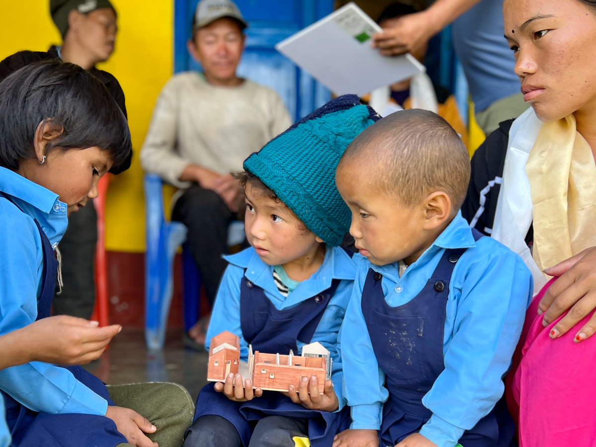 Building Bureau traveled with NPO Nepal to Ekuwa with a model of the proposed Health Post, also pictured in the cover photo with Ekuwa school children.