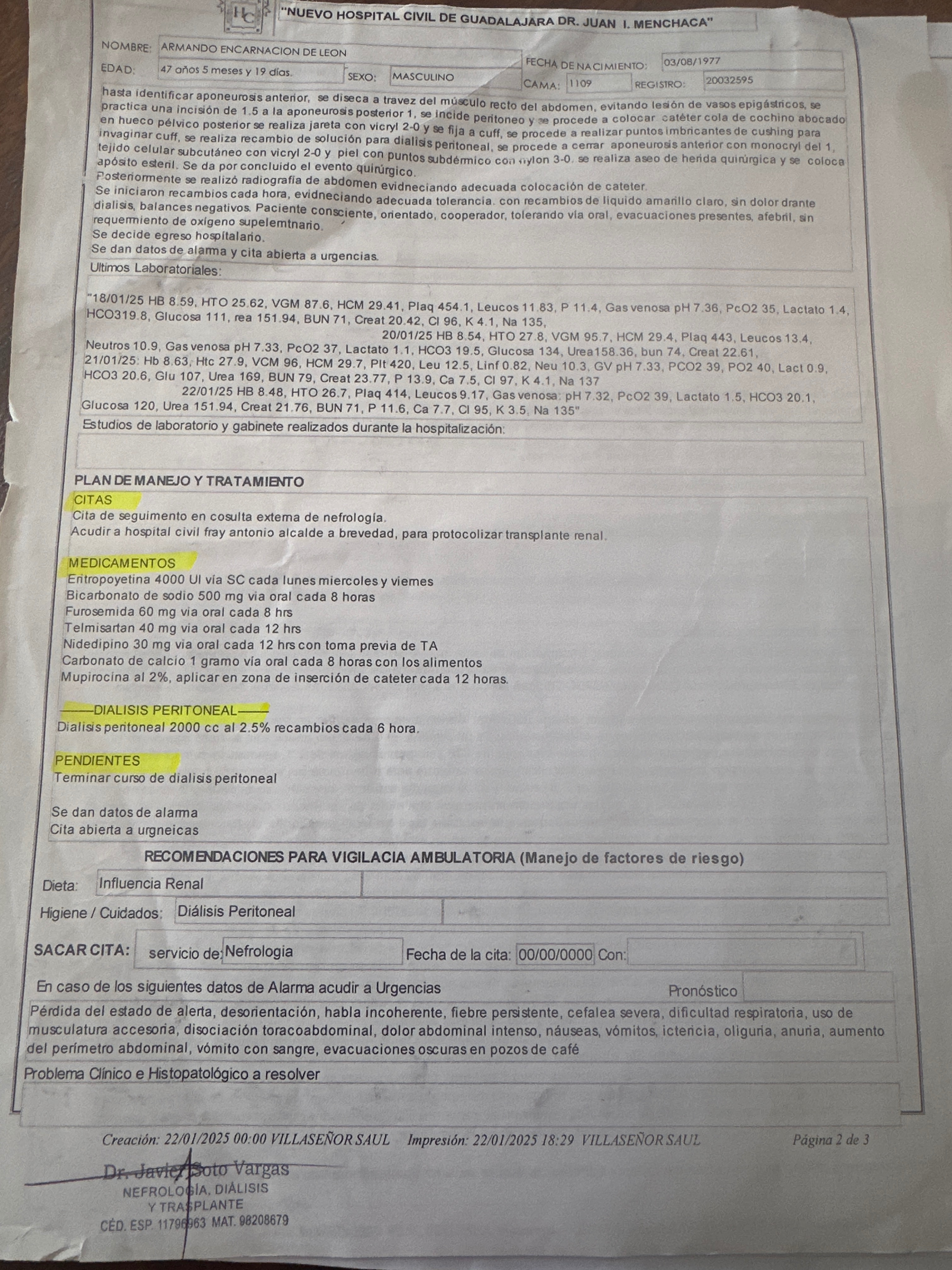 Hola , mi nombre es Armando Encarnacion tengo 48 años de edad , actualmente estoy diagnosticado con insuficiencia renal en etapa terminal , estoy en tratamiento sustitutivo de hemodiálisis.