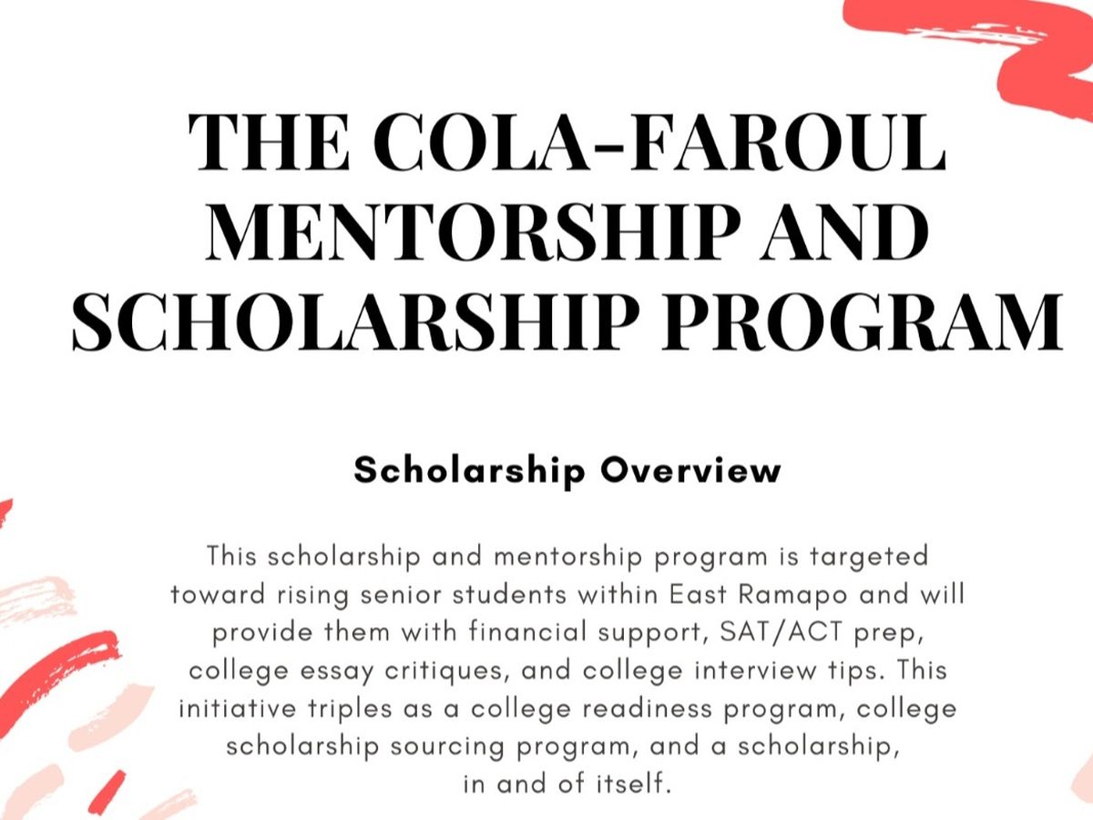 The mission of the Cola-Faroul Mentorship and Scholarship Program is to demystify the college application process for promising East Ramapo Central School District students and provide them with scholarship and academic support. The vision is to help increase the college matriculation rate within East Ramapo, one student at a time. This initiative was started by Ellen Sue Cola, a proud product of the East Ramapo Central School District and recent graduate of Brown University.