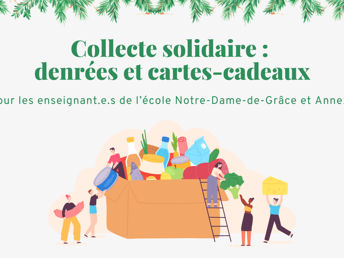 Collecte solidaire : denrées et cartes-cadeaux pour les enseignant.e.s de l’école Notre-Dame-de-Grâce et Annexe.