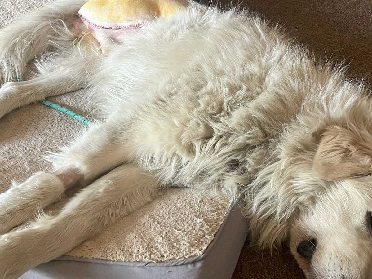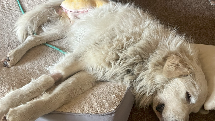 Atlas is a 5-year-old Great Pyrenees/Maremma mix and he's been our livestock guardian dog to our organic and free-range chickens, turkey, and pigs, located in Southern Oregon. In January 2025, we noticed a growth appear on his right hind leg at the hock, causing damaging swelling to the point that we needed to amputate the leg at the hip just two weeks later...