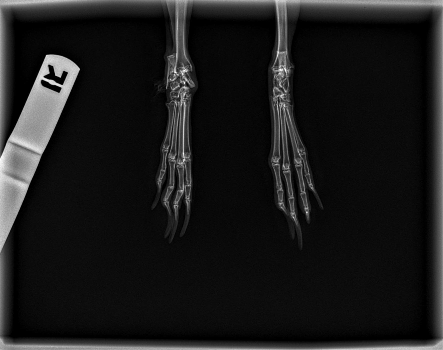 Keewon just had an accident leaving one of his rear hocks (the flat side of his foot) completely shattered.