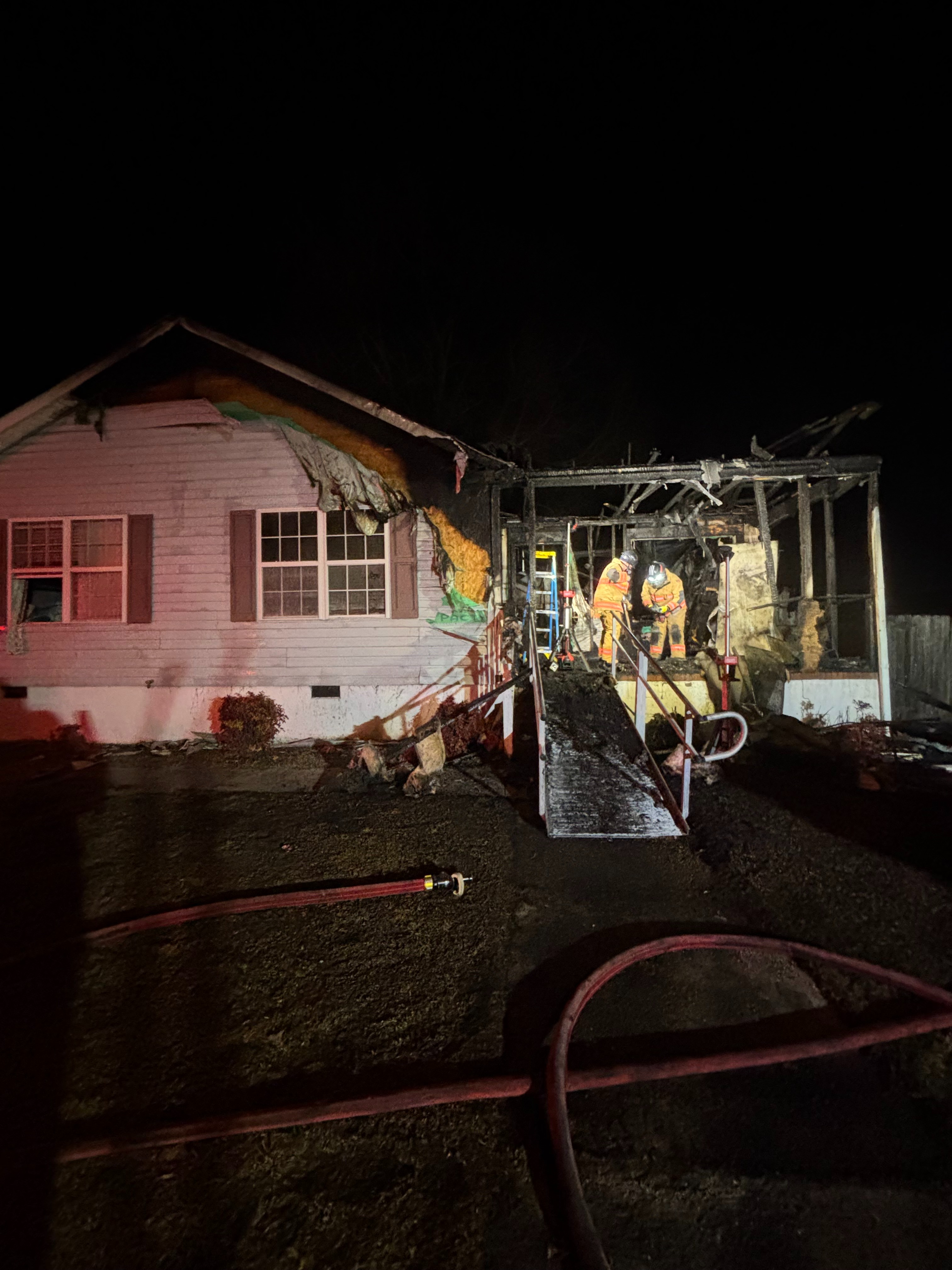 After I left, it appears the woman got up to smoke a cigarette, likely near our door because it was cold, and may have flicked it without fully putting it out. We believe the cigarette may have caught onto a tarp or a TV box that was on the porch.