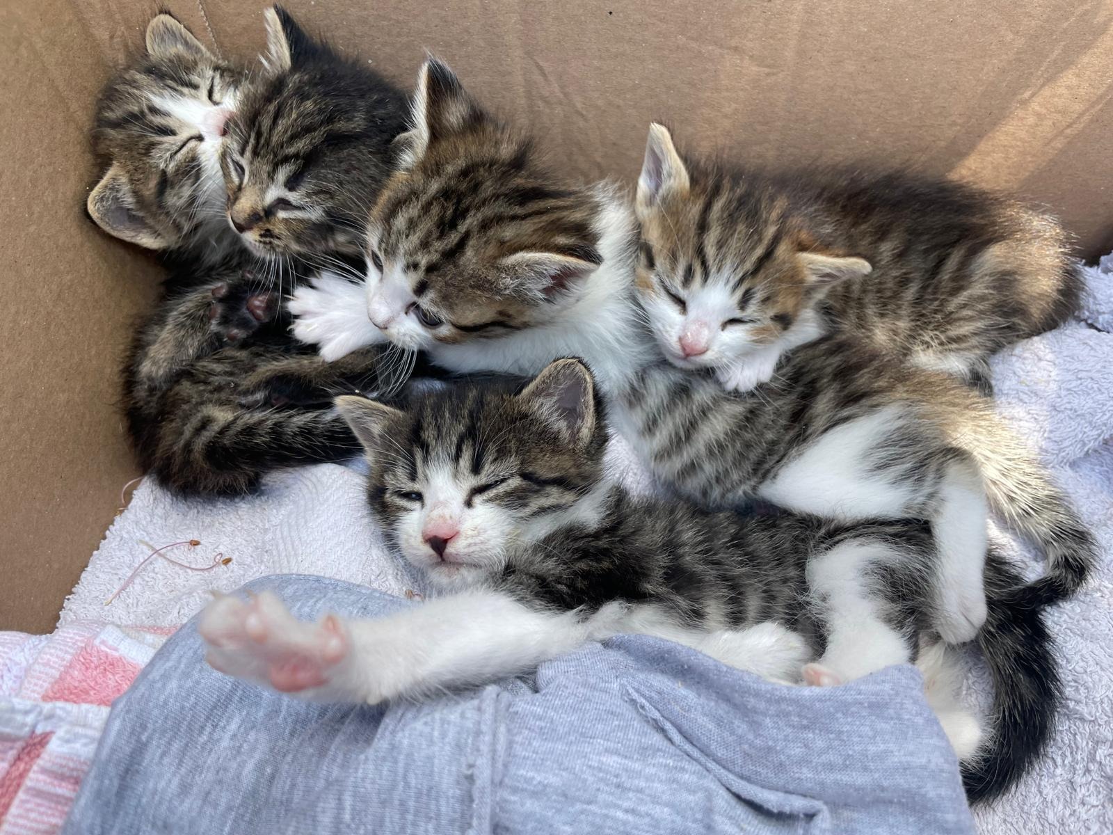 Vorher: Eine Gruppe Babykatzen wurde allein im Wald gefunden – schwach, verängstigt und schutzlos.