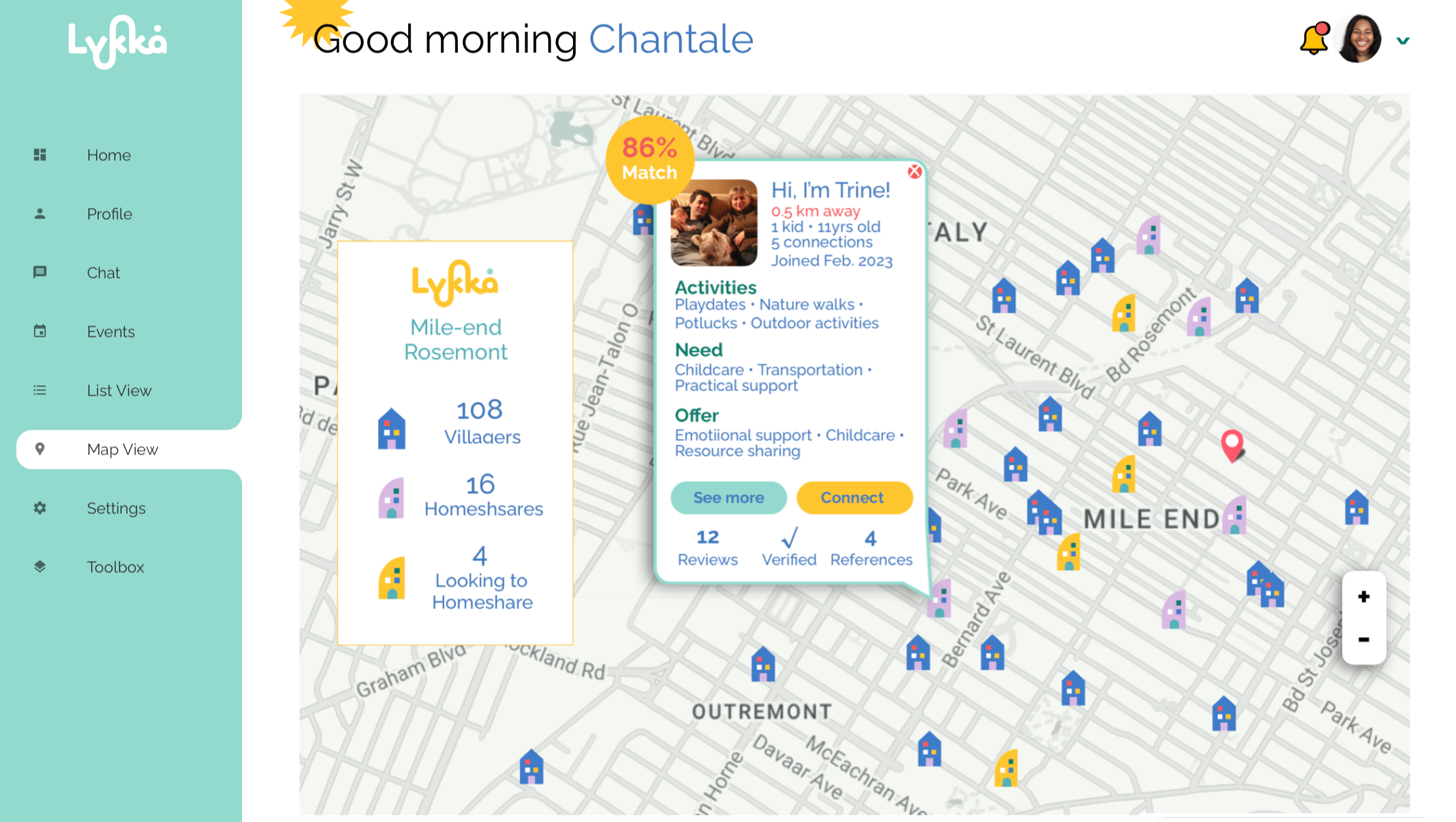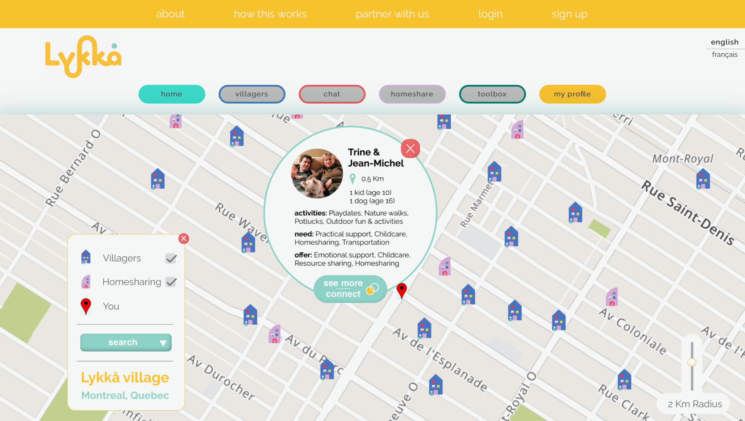 As a social impact enterprise, we believe that business and listening to, learning from and working with our community go hand in hand. We are committed to building our online platform and providing innovative and impactful connections, programming and affordable communal housing. We want to see Montreal, and beyond, filled with a web of Lykkå Villages connected within each neighborhood, learning and growing resilience together, in conversations while supporting each other through our daily tasks. We want to see buildings become homes filled with people doing life together, and offering value and energy to the extended community around them.