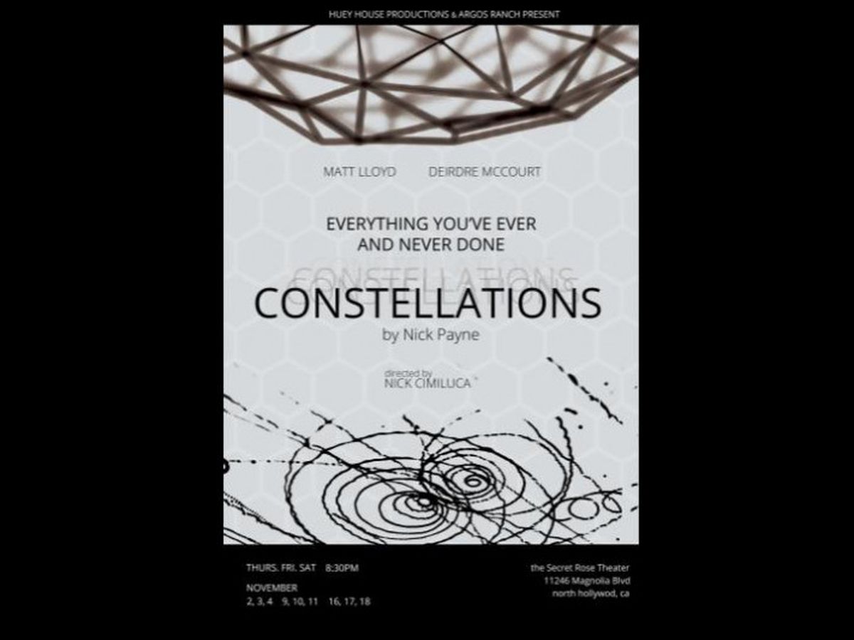 Matt Lloyd and Deirdre McCourt met four years ago in an acting class and didn't speak for the first two of those years. Somewhere in the middle of all of this, they became the best of friends and gathered up the courage to produce a piece of dying theater together. One day. At Samuel French. They picked up the play, Constellations by Nick Payne.