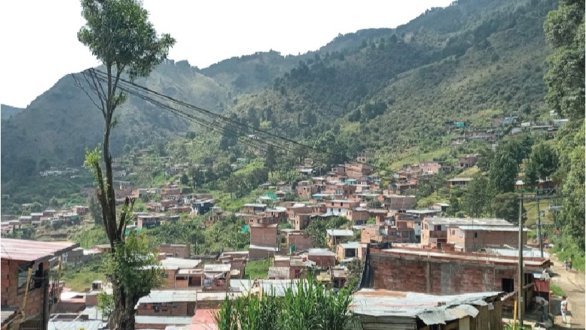 Situé en périphérie de Medellín, sur «la montaña que siente», le quartier naît en 1970 avec l’arrivée de populations rurales, expulsées de leur terre par les conflits armés. Il est aujourd’hui peuplé de 10 000 âmes, dont des réfugiés vénézuéliens issus de la crise que traverse leur pays.