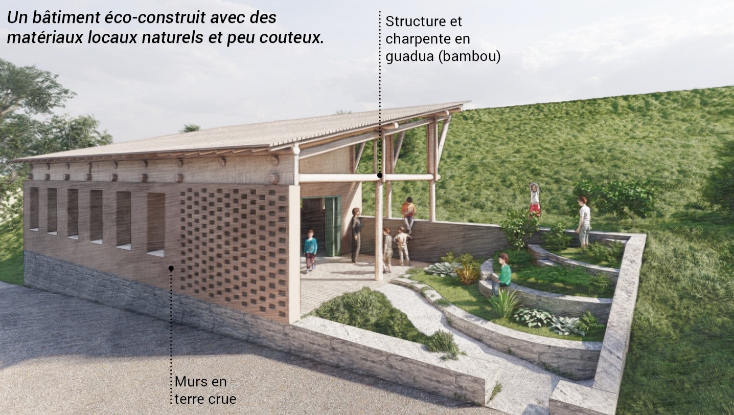 Co-conception et construction participative d’une maison de santé, LA CASA PARA LA VIDA en matériaux naturels et locaux (bambous et terre crue)
