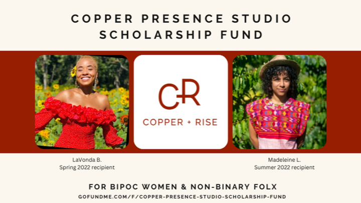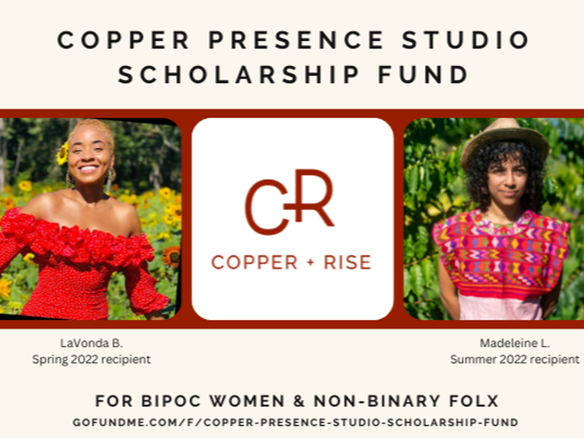I’m excited to continue the Copper Presence Studio Scholarship Fund, specifically for BIPOC women and non-binary individuals.