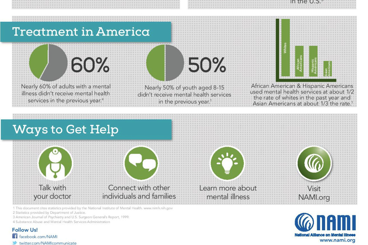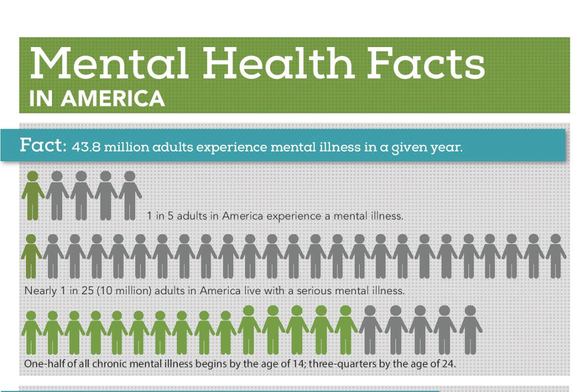 As we grow older it seems more and more of our friends and family are affected by some kind of mental illness. This is because there are lots of people that are affected by it on a day-to-day basis. 1 in 5 adults experience mental illness in a given year. The friends and family that are suffering, that you're aware of, are merely the tip of the iceberg. Look around, the person who may seem the happiest could easily be suffering the worst. Depression is the leading cause of disability worldwide but we hardly hear about it. The negative stigma associated with mental illness is causing people who could otherwise receive help and become better, to not seek help. Nearly 60% of adults with a mental illness didn't receive any mental health servicing in the previous year. This lack of help easily diminishes the quality of life for sufferers and, in some cases, even causes them to end their own life. 90% of those who die by suicide have some kind of underlying mental illness. And suicide is the 10th leading cause of death in the U.S.
