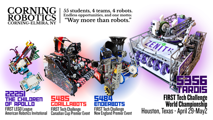 The Corning Robotics program serves 14 teams across all grade levels, and our teams’ growth and consistent achievement in upstate New York has created a wonderful problem in terms of our funding for post-season competitions. We are proud of our accomplishments, and grateful to everyone who has supported our teams this season! In particular, we're thankful for our primary sponsor, Corning Incorporated, who's been with us every step of the way since our program’s founding in 2011.