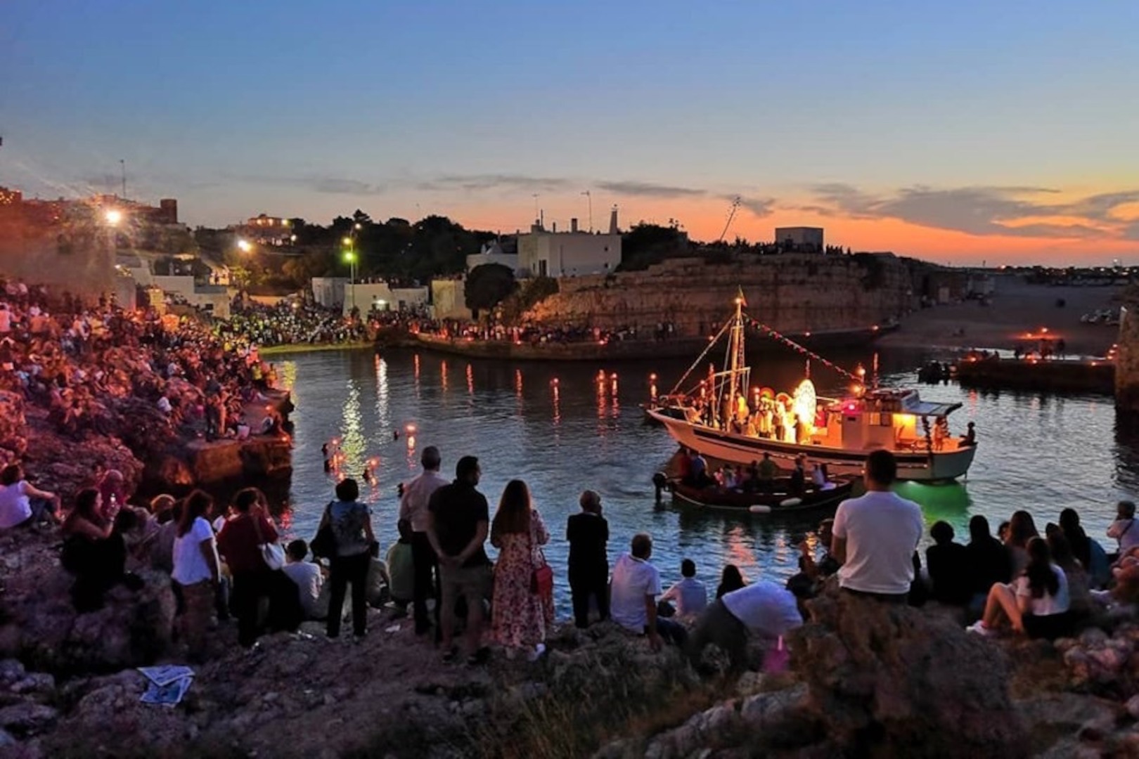Il corteo storico dei pescatori per mare durante la processione di San Vito a Polignano a Mare, ha origini antiche e profonde radici nella tradizione marinara e religiosa della città.