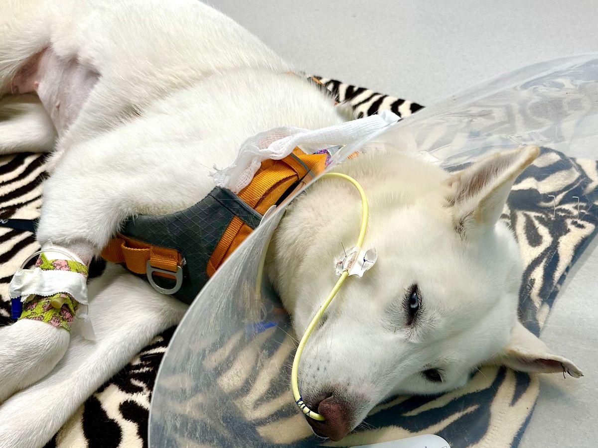 Lucky (Ducky), my wonderful foster dog, had emergency surgery for an obstruction after eating the hard plastic squeaker from a toy. Please donate anything you can to help me cover her veterinary bills, totaling almost $6k .