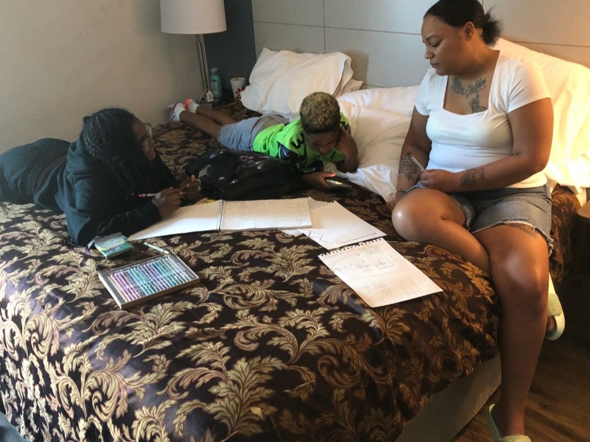 I’ve paid for the room through Oct. 21. After that, I don’t know what I’ll do. When I get overwhelmed with fear of how I’ll keep going for my kids, I go in the bathroom and turn on the shower, so they won’t hear me cry.