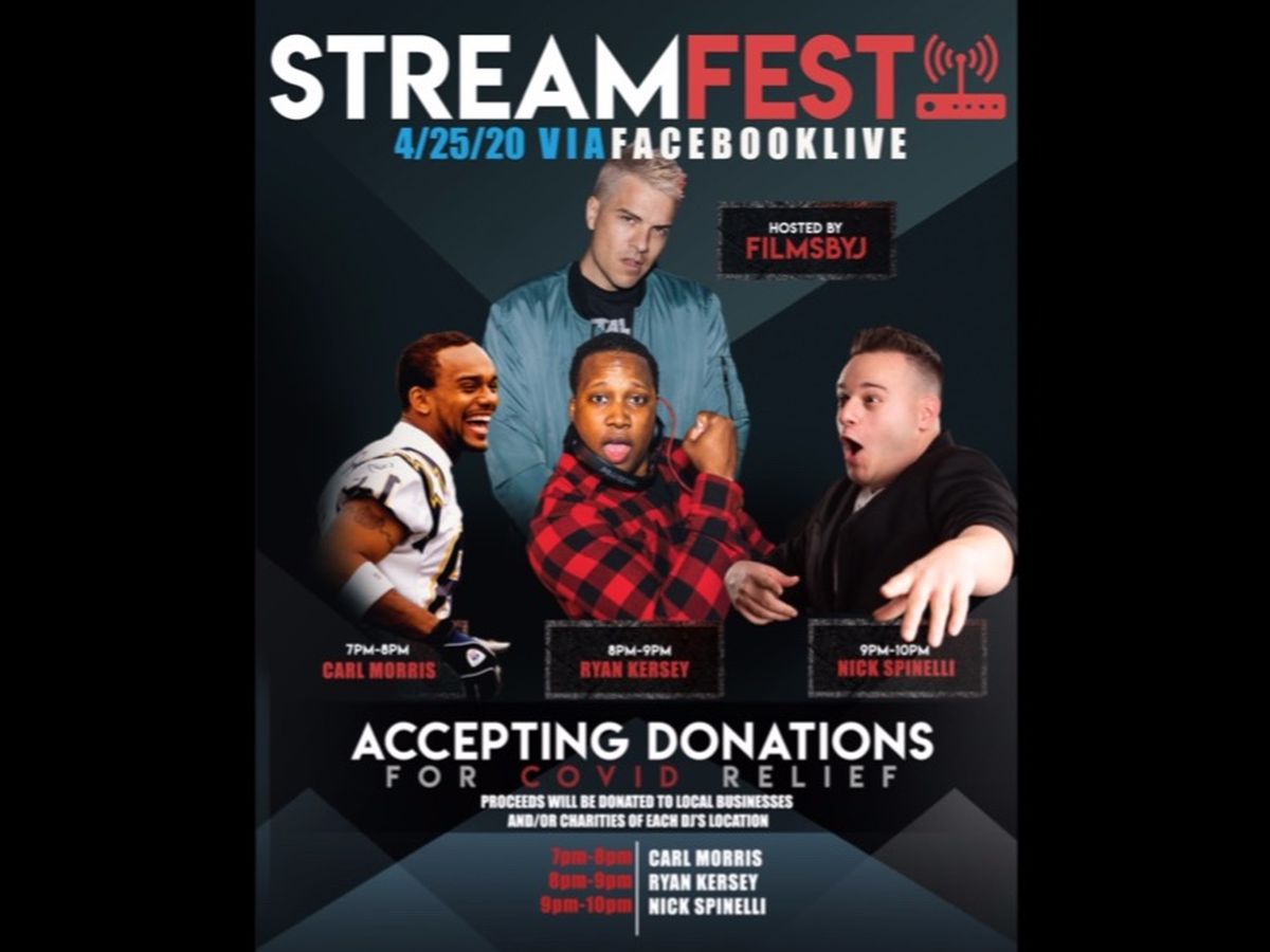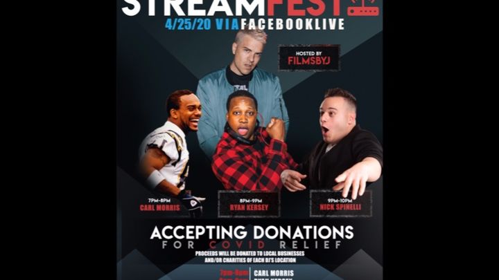 StreamFest 2 - Every week I am going to feature different musicians from around the world to do sets for everyone LIVE via FaceBook. We will be raising money for small businesses/charities/families. Last week we had 4 DJ's from DC, Texas, & Australia and this week we have 2 from DC and one from Jersey! These are all close friends of mine who are donating their time/talent to help people in need. Any donation is greatly appreciated but if you cannot afford to donate anything during this time, please just enjoy the show! Thank you so much to EVERYONE who donated last week - we raised over $4,000.  We have former NFL player Carl Morris opening up, Ryan Kersey doing the second set, and Nick Spinelli finishing the night off with some BANGERS! We want to give back and say thank you to our local small businesses/charities that have done so much for us and our communities. The businesses/charities this will benefit this week are StillBrave Childhood Cancer Foundation, VA and The Judy's Elves Foundation, PA
