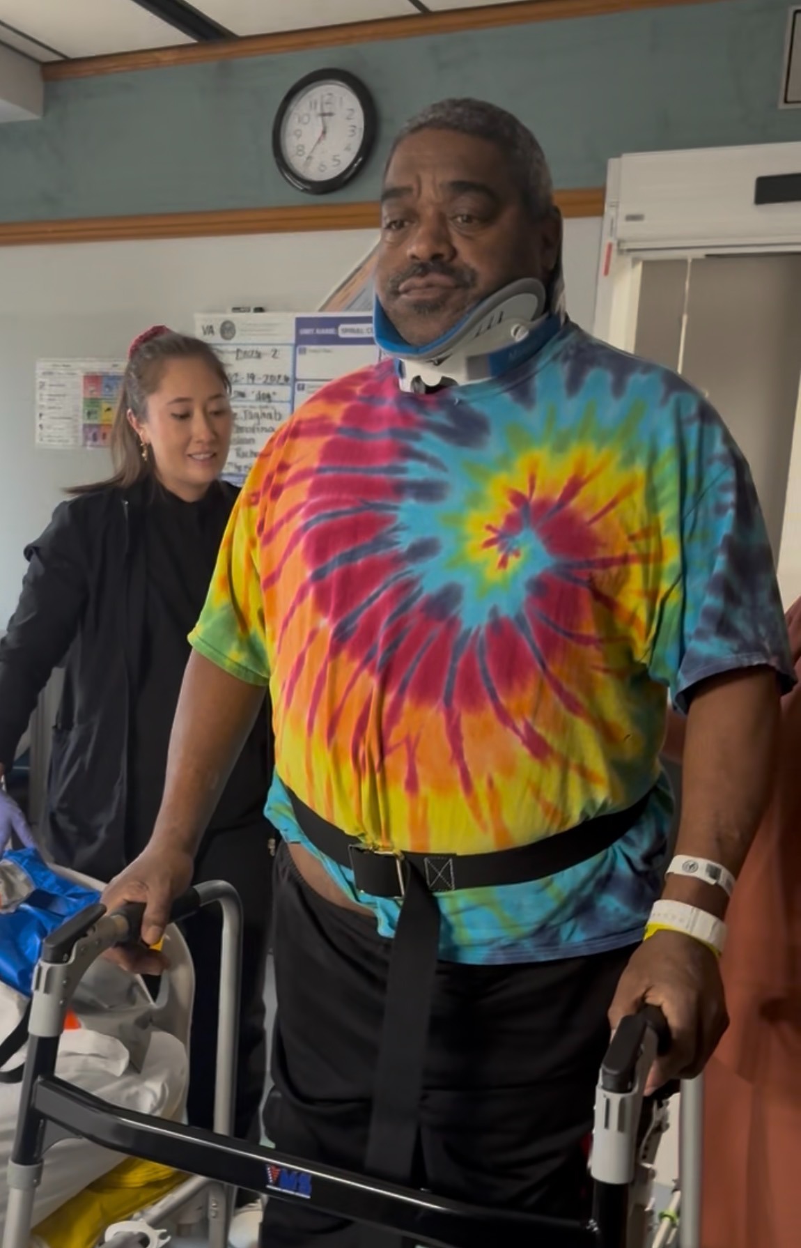 Following that, our lives were turned upside down when Walter suffered a sudden medical emergency (cervical cord compression) that left him paralyzed. The shock and emotional toll has been overwhelming, but we are determined to do everything we can to support his recovery and help him adapt to this new reality. Walter is a fighter, and he has slowly been improving to the surprise of the medical staff. Through the help of rehab, Walter has slowly regained ROM and strength in his legs and is now able to ambulate with a rolling walker and rollator for short distances. He has also improved his ROM and strength in his upper body, but there is still a long road ahead.