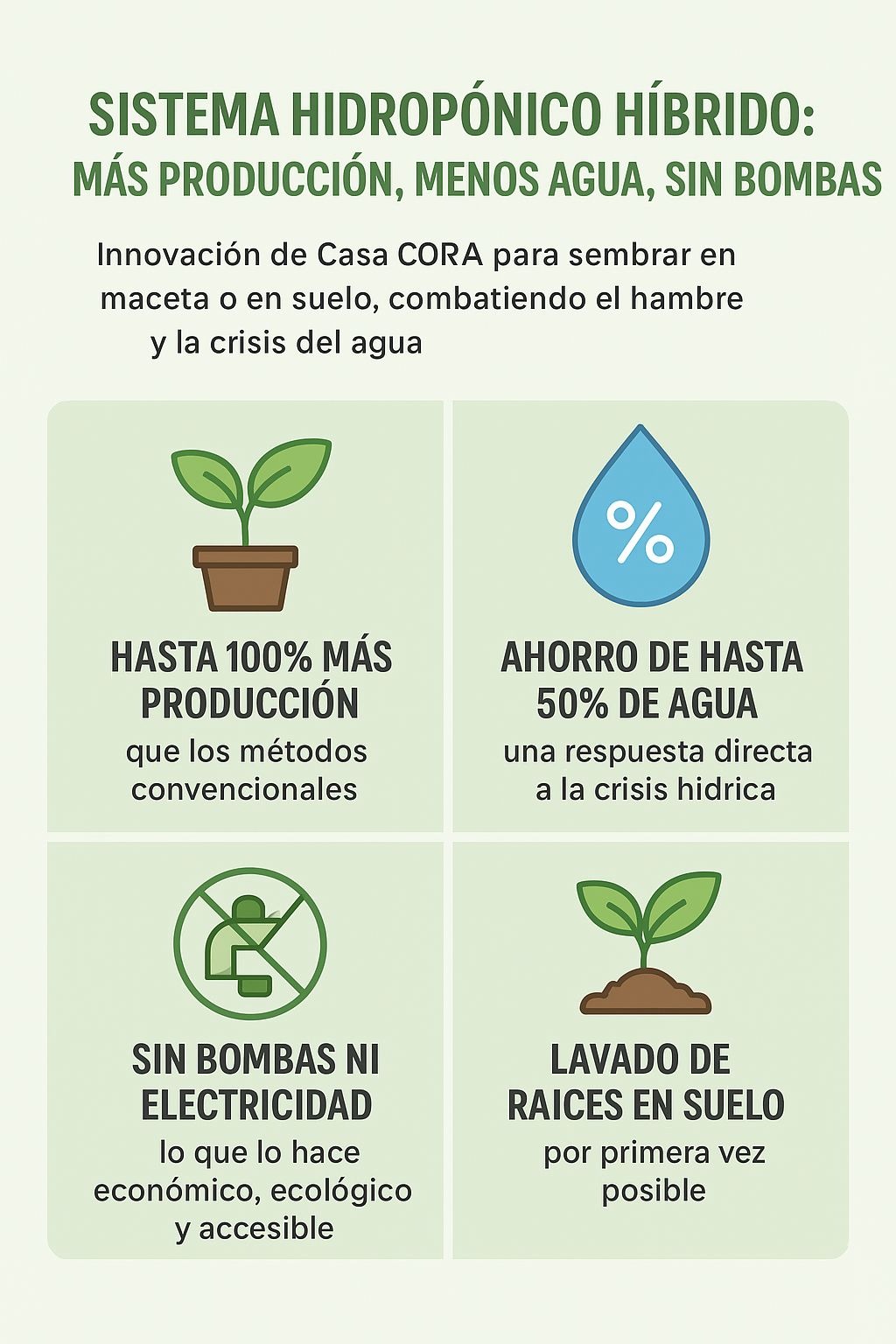 Hoy quiero compartir contigo un invento que puede cambiar la forma en la que sembramos y cultivamos alimentos y flores medicinales: el Sistema de Cultivo Hidropónico Híbrido de Casa CORA.