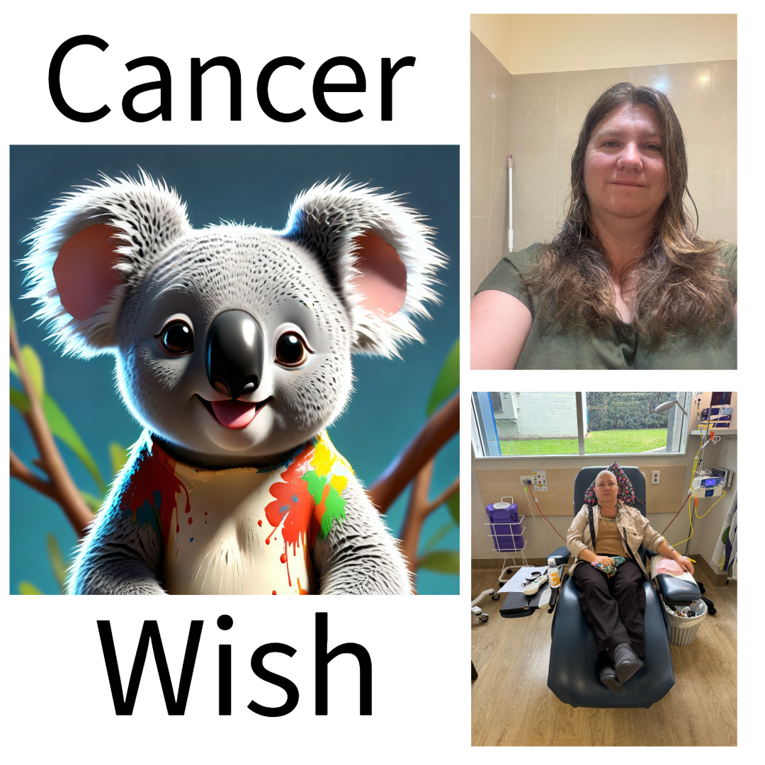 I had to shave my hair prior to cancer treatment …My cancer wish is to raise money for the koala hospital in Lismore.