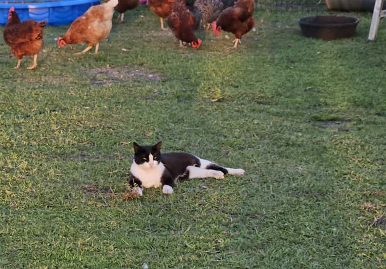 That’s when Blueberry Heaven Sanctuary became her haven. We were contacted about giving this graceful, tuxedo-coated mama a permanent home, and without hesitation, welcomed her into our sanctuary family. For the past two years, she has lived peacefully among her fellow rescues, surrounded by love.