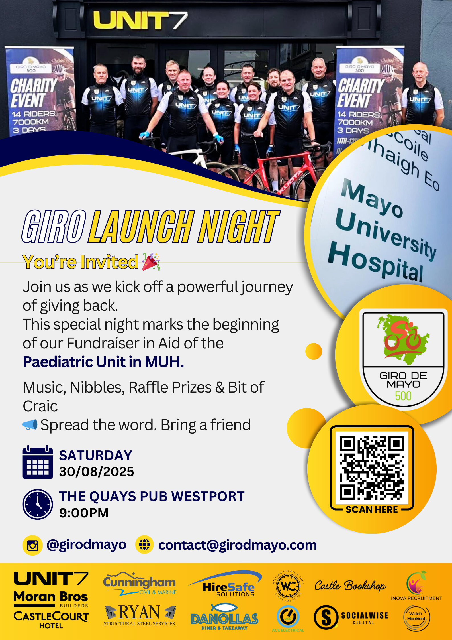 Together with the Giro d'Mayo Cycling Team we intend on taking on an epic ride around Mayo covering 500KM each over 3 Days all in aid of the Castlebar Paediatric Unit in MUH.