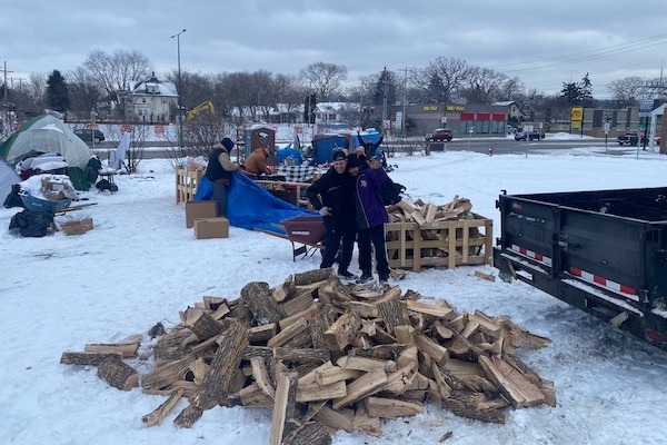 Our first and current charitable project is providing aid to people experiencing homelessness in the Twin Cities by sourcing, preparing, and distributing firewood and collecting and distributing essential items such as clothing, food, basic medicine, and hygienic supplies.