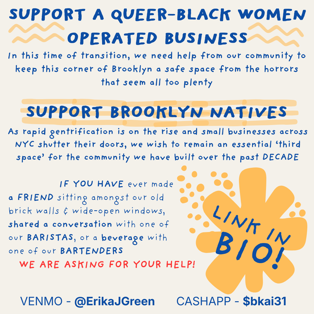 Located at 38 SOMERS Brooklyn, New Yoyk, this cafe & bar endeavors to provide all patrons with a safe place to work, commune, and create.