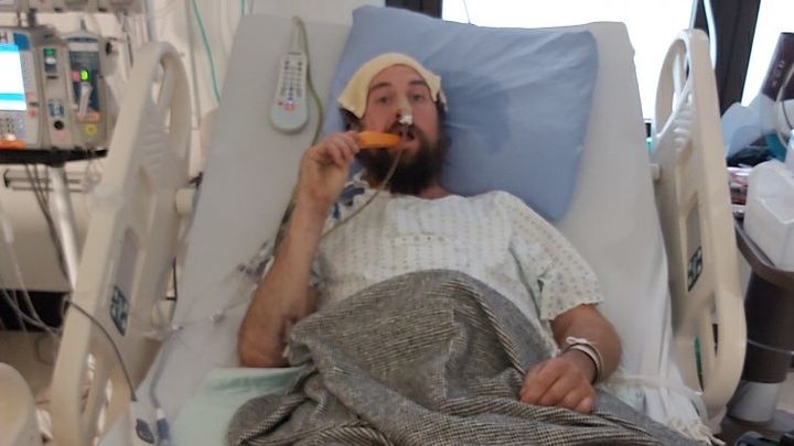 He cannot have a feeding tube as his stomach and bowels need more time to heal.