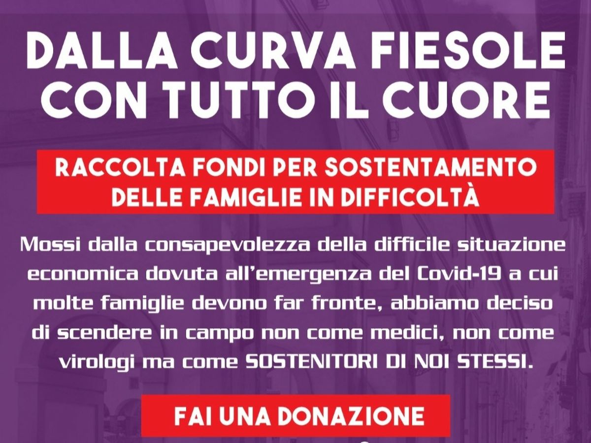 Dopo aver collaborato alla raccolta fondi promossa con successo dalla CURVA FIESOLE per l’acquisto di mascherine che sono state donate ad alcuni presidi ospedalieri e ad operatori dei mezzi di soccorso della città di Firenze, l’ A.T.F. ha deciso di dar vita ad una nuova iniziativa con la partecipazione ed il supporto della CURVA FIESOLE.
