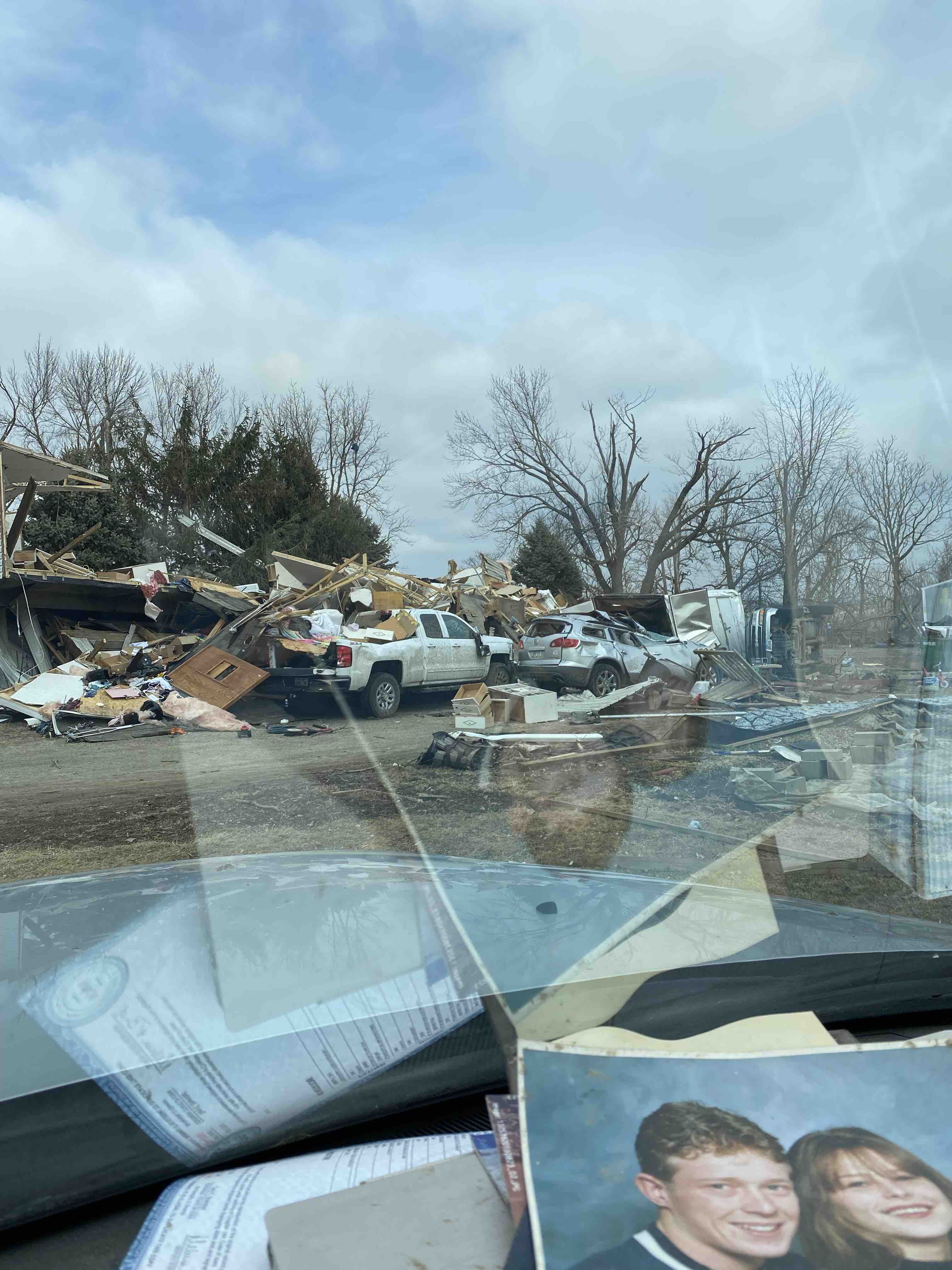 My name is Dan needels. Yesterday Miranda Davis and I and our 3 kids 2 dogs and our cat survived yesterday. The mobile home we live in blew over with the five of us in it  and landed on our garage. Destroyed everything we own. We didn’t have insurance on the house so everything is a total loss. But at least we are all ok. Miranda got a bunch of stiches. A few of my friends asked to send money. Thank the lord for keeping us safe.