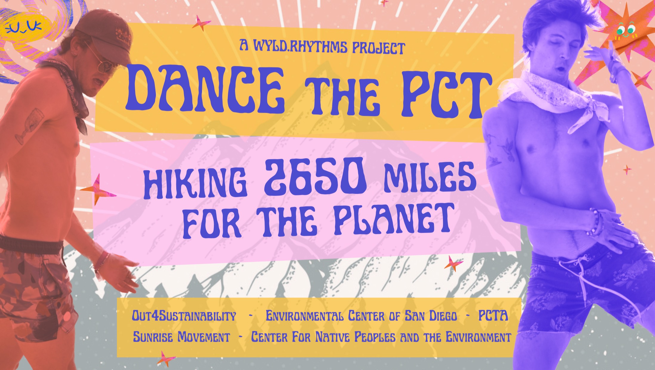 Now here's how we're going to do it! Anyone is welcome to donate any amount. When you make a donation, you can leave a comment on GoFundMe or message us on Instagram @wyld.rhythms with a song request. When we're on the trail, we will record a video of us dancing on the PCT with the stunning background of the American West, post it on our feed, and shout you out. Donations provided will be split 50/50—half going towards off-setting the cost of our hike, and half going toward the organization(s) of your choosing! You can also specify if you want 100% of your donation to go to one or all of these 5 incredible organizations!