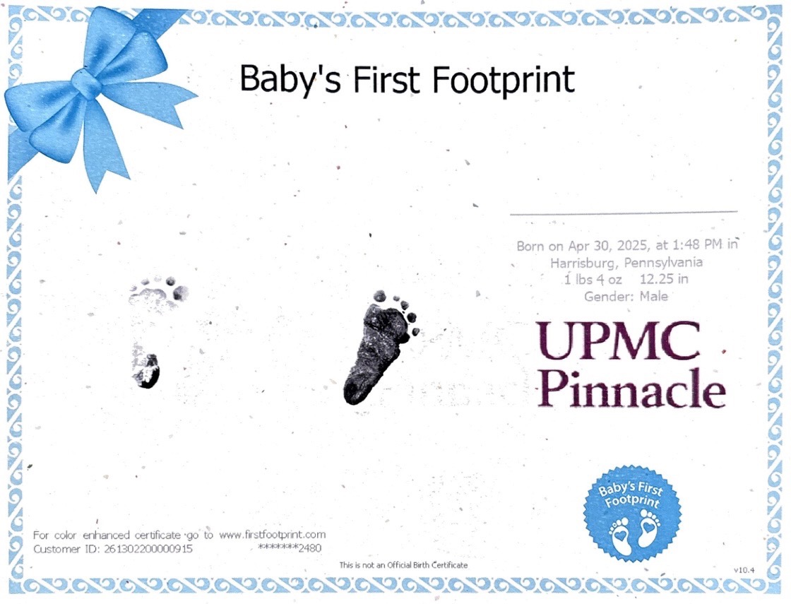 Last Wednesday April 30th, it was no longer safe for Baby Oliver or his Mama to continue the pregnancy. He had a better chance at surviving by being born now. Hannah had to have an emergency c-section. I can tell you it was one of the most stressful days in our family’s lives. All six grandparents, along with many family members and friends, prayed hard for the best outcome for Mama and baby. And God blessed us as our grandson arrived safely! He was born at 26 weeks gestation. Which is VERY early! So early that he is considered a MICRO PREMIE He weighs 1lb 4oz and is 12 1/2 inches long. He came out breathing on his own and needing only minimal assistance!!! Our tiny warrior is indeed a miracle . But that was just step one.