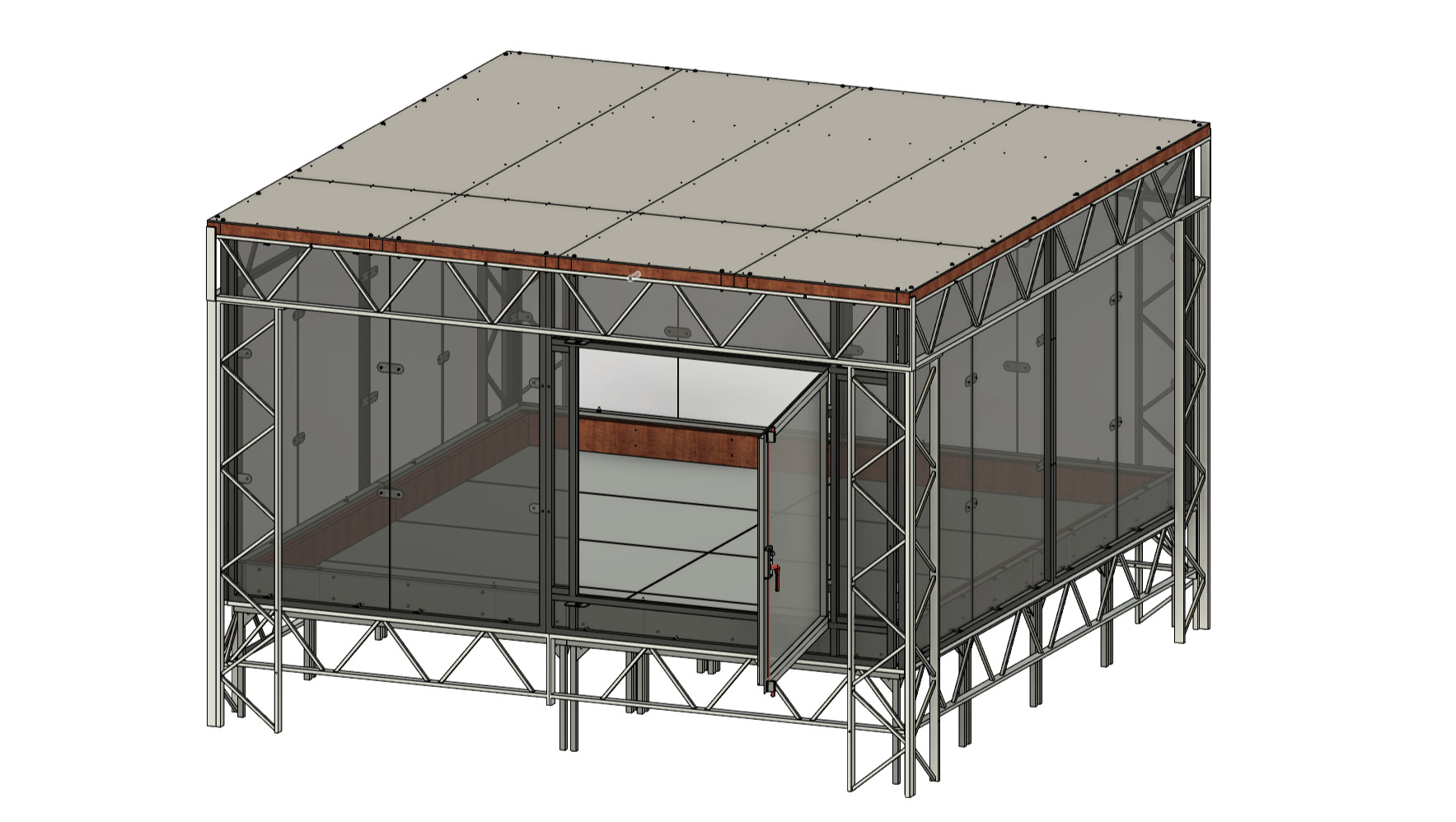 • Remplacement et sécurisation de la porte d’accès : la porte actuelle, qui s’ouvre vers l’intérieur, sera remplacée par un système plus ergonomique et plus sûr, s’ouvrant vers l’extérieur. Cette modification facilitera les phases de mise en place et de retrait des robots, tout en réduisant significativement les risques lors des manipulations. Le dispositif de verrouillage sera également amélioré afin de répondre aux standards de sécurité attendus.