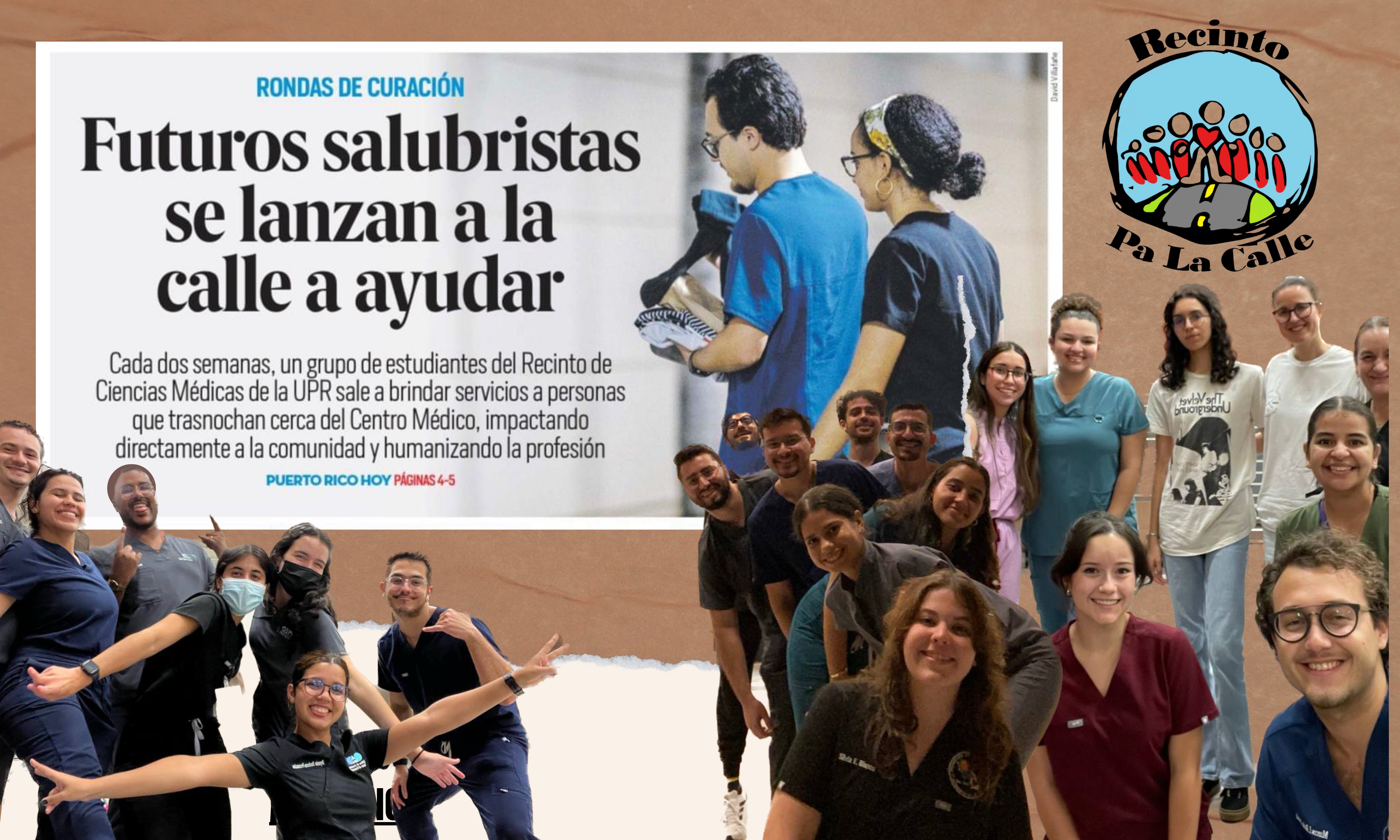 Recinto Pa’ la Calle es una organización estudiantil que apoya a personas que usan drogas y personas sin hogar en los alrededores de Centro Médico en Puerto Rico. Además de alimento, ofrecemos limpieza de heridas, equipo para revertir sobredosis, materiales de primera necesidad y enlaces a servicios de salud y vivienda. La reducción de daños es nuestra filosofía salubrista; basada en la autonomía y la justicia social.