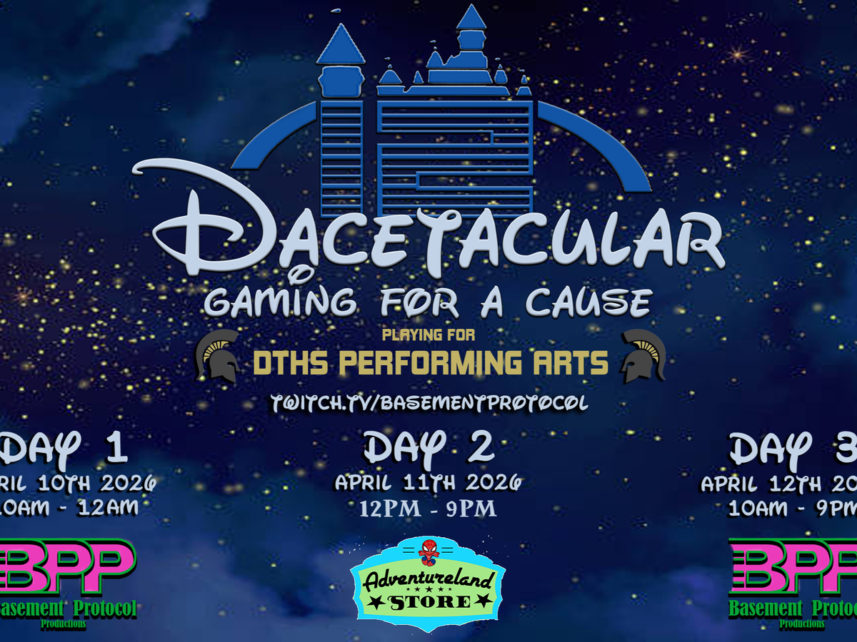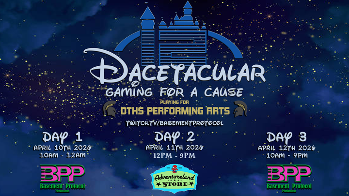 This year, The Basement Protocol is taking the magic on the road! While Day 1 and Day 3 will still stream live from the iconic BPP Studios, Day 2 invites you to join the action in person at the Adventureland Store located in the Gloucester County Premium Outlets. Come hang out, game hard, and support a great cause!