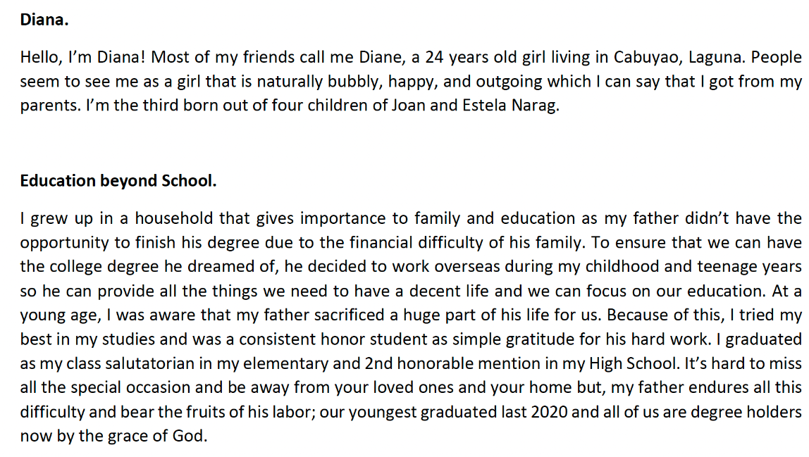 I’m starting a GoFundMe campaign for my friend Diana Rose Narag, whom I worked with at my previous firm. Diana is a 24-year-old accountant who lives in Cabuyao, Laguna, Philippines. We became close while we worked on a handful of projects together.