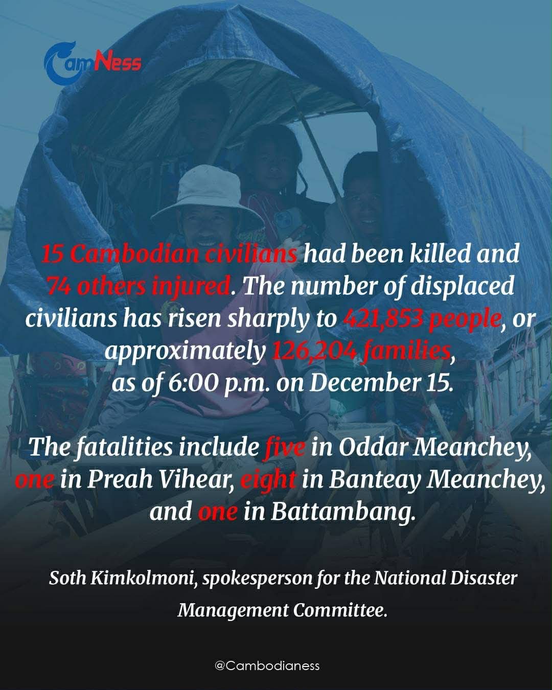 Cambodia is facing the worst refugee crisis since the Khmer Rouge. There have been attacks from Thailand in villages all along the border. Four provinces have been evacuated as of today, December 15th. The number of people who have been displaced is almost 500,000 and still growing. Cambodia does not have the infrastructure to support this many displaced people. It is our job to do what we can.