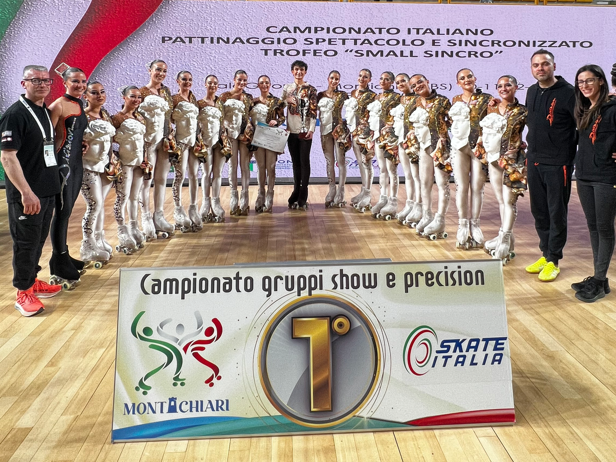 Siamo il Gruppo Junior DIVISION Pattinaggio Portogruaro, Campioni Italiani per il sesto anno consecutivo e attuali Campioni Europei 2024.