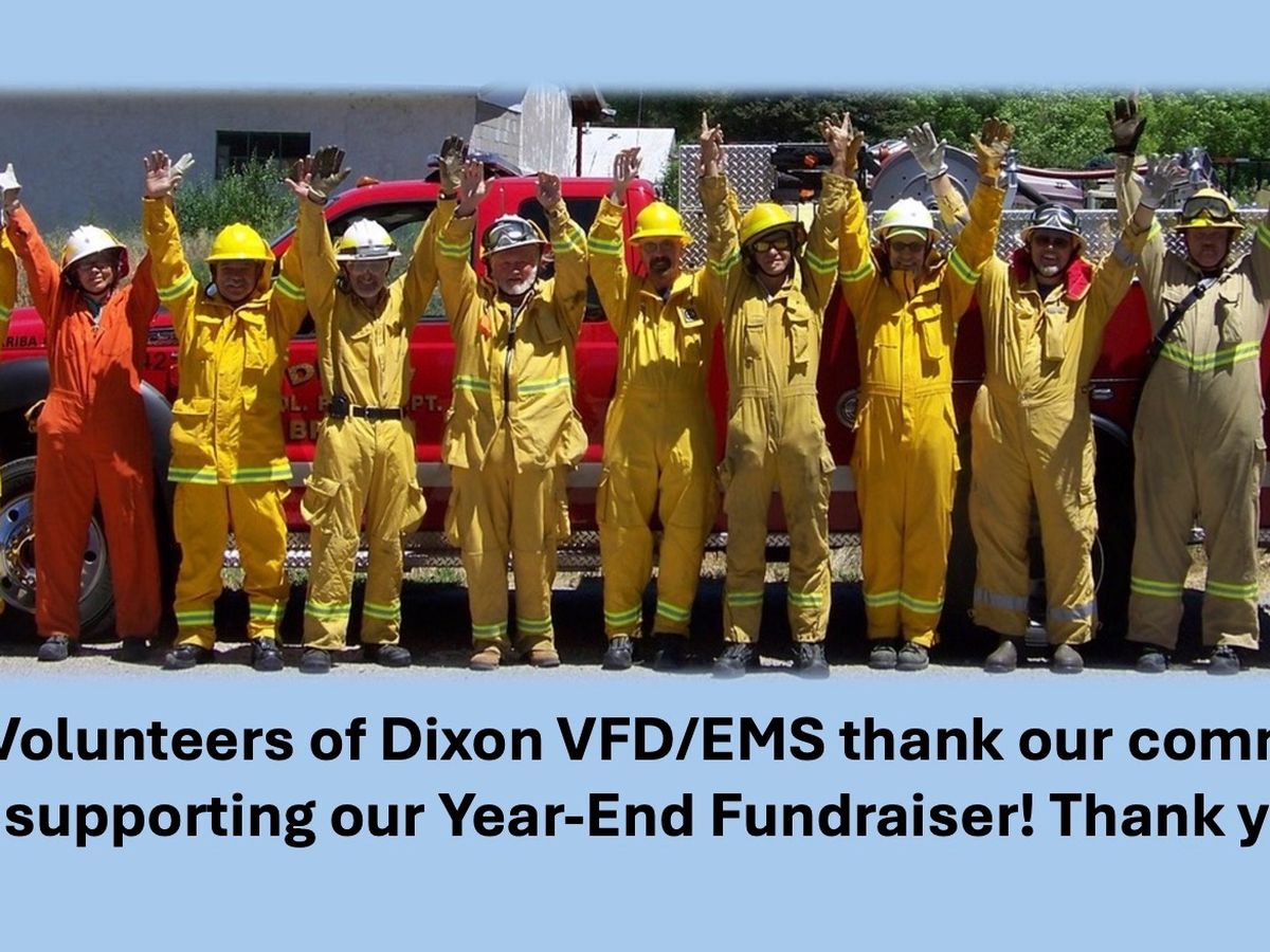 Although we receive financial state support for purchasing firefighting and EMS apparatuses, much of our training expenses and community events expenses are not supported by government funding. Each year at this time, we appeal to the people of our region to help keep us strong and growing by donating to the Dixon Community Fire Department fund, a 501(c)(3) charitable service organization that directly supports the hard-working volunteers of Dixon VFD/EMS. Your contribution will also support our annual Dixon VFD Aaron Griego Summer Youth Cadet Program that has meant a lot to many young people in this community. Please consider a donation to our work. We pledge to be there for you (and your friends and your family) when you need us.