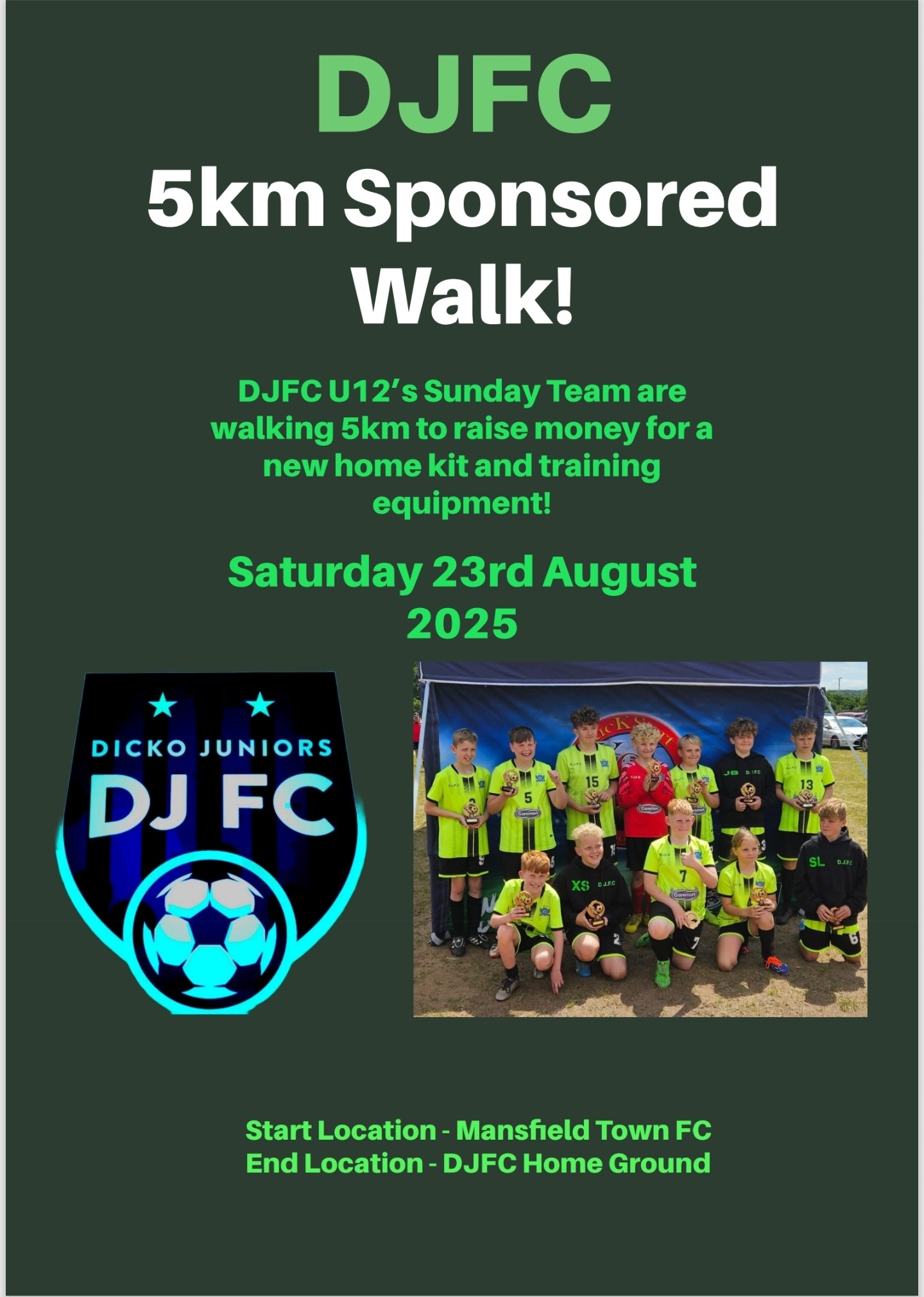 To help fund this we as coaches and the kids are going to walk 5km to try and raise some funds to contribute towards this. We will be walking from Mansfield Town Fc Ground to our Home Ground which is located at Old Penny Emma Way, Sutton In Ashfield.