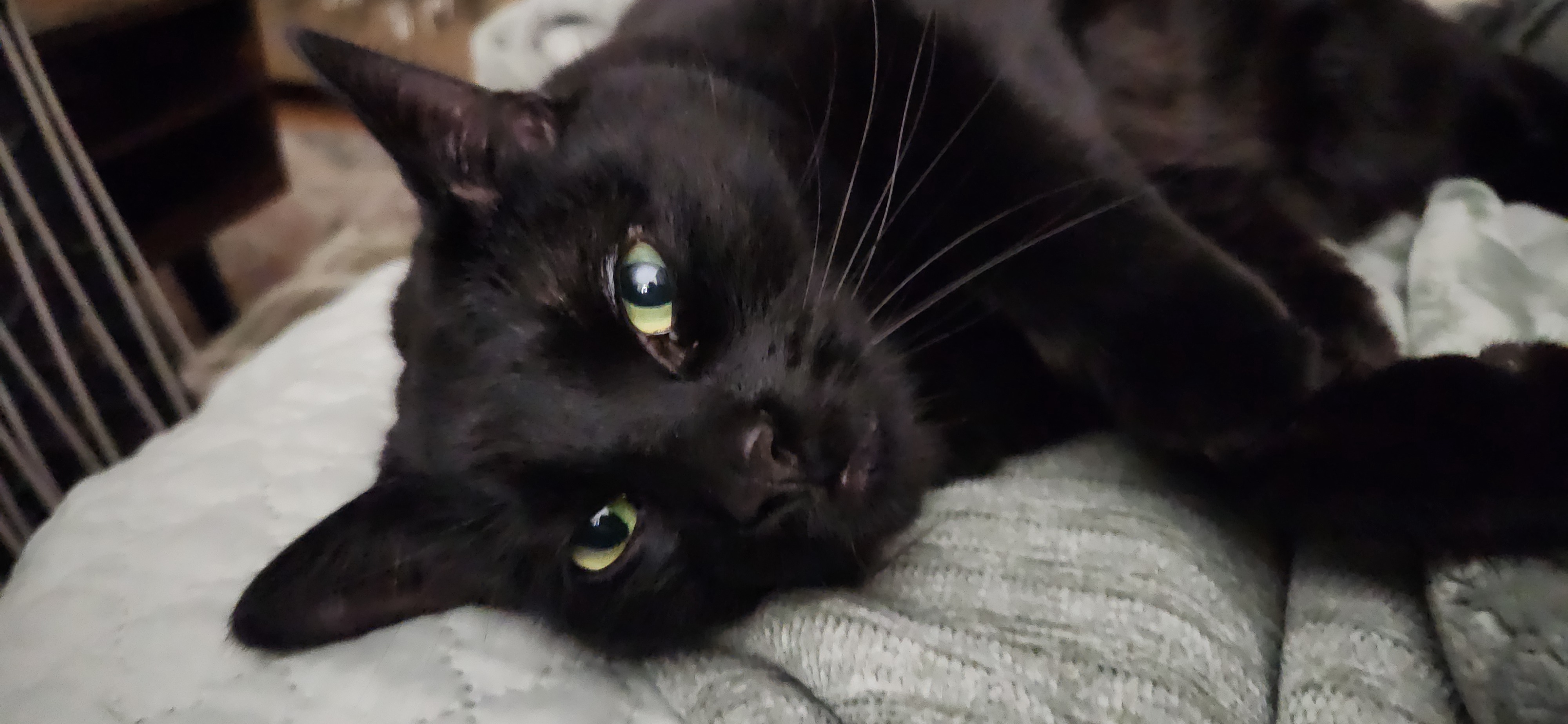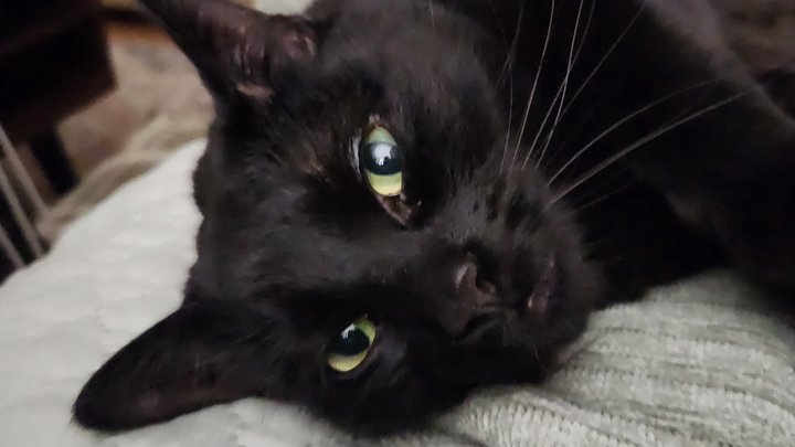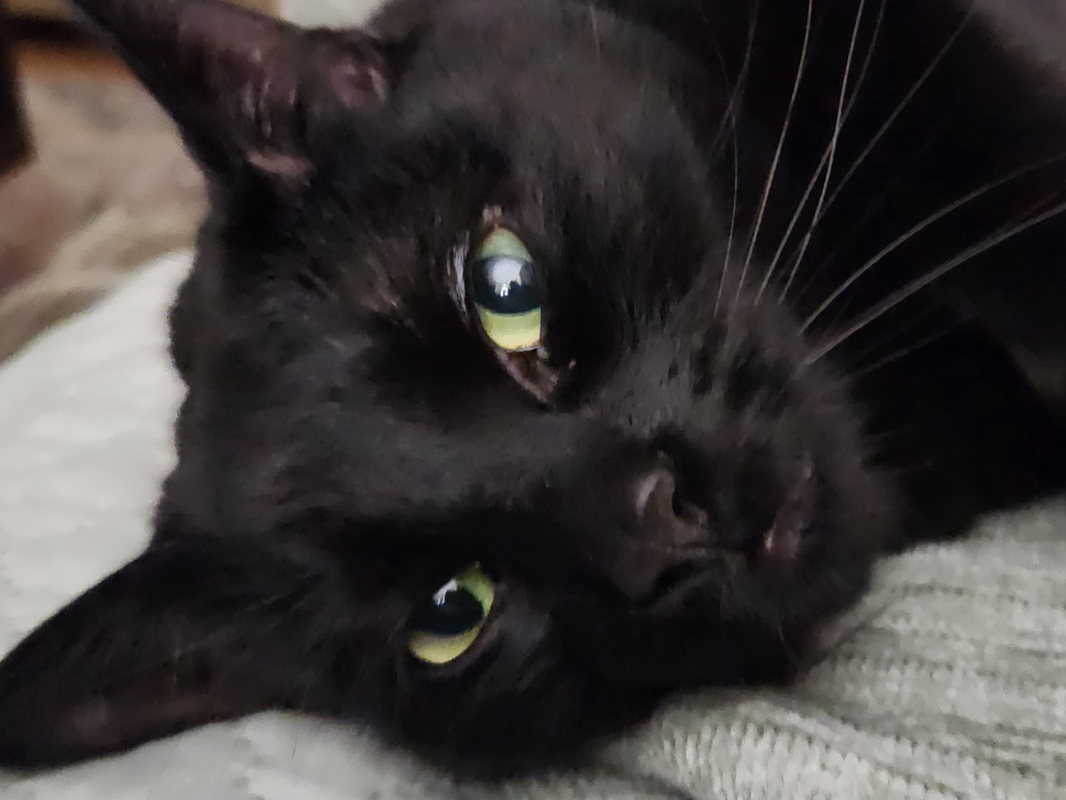 The day he came to us was a JOY - though he was in fact a bit "much" but he was a 1 year old big black cat - He was just a baby! Rambunctious is the word. A lot ofnrough claw and teeth playing. He had no outlet for his energies. He was the lone pet in our house until September of 2023 when we adopted another kitty named Ollie (8 weeks at that time) and dog Cookie - a Boston Terrier (12 weeks).