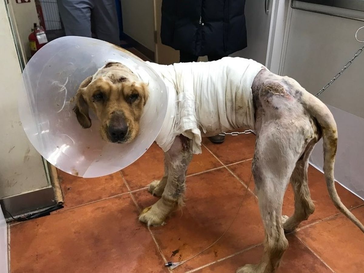 Gi (translation: Brave) is one of those horrifying, heartbreaking cases that brings us to tears in rescue. Gi was discovered emaciated in South Korea with open wounds on his head and neck, and burns across his frail body. He trembled and cried in pain as well as out of fear of humans. They didn't think he would make it.