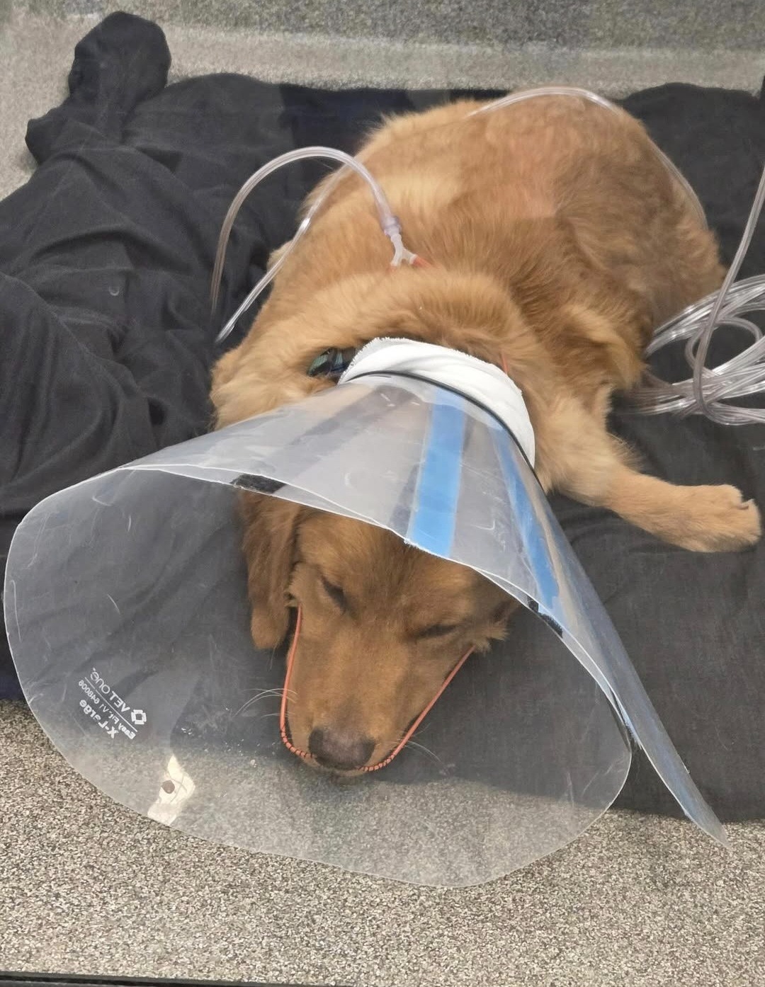 Nyx is doing better—she’s wagging her tail and already getting irritated with her breathing tube, which is actually a great sign. Both of their carbon monoxide levels have come down, which is a huge relief.