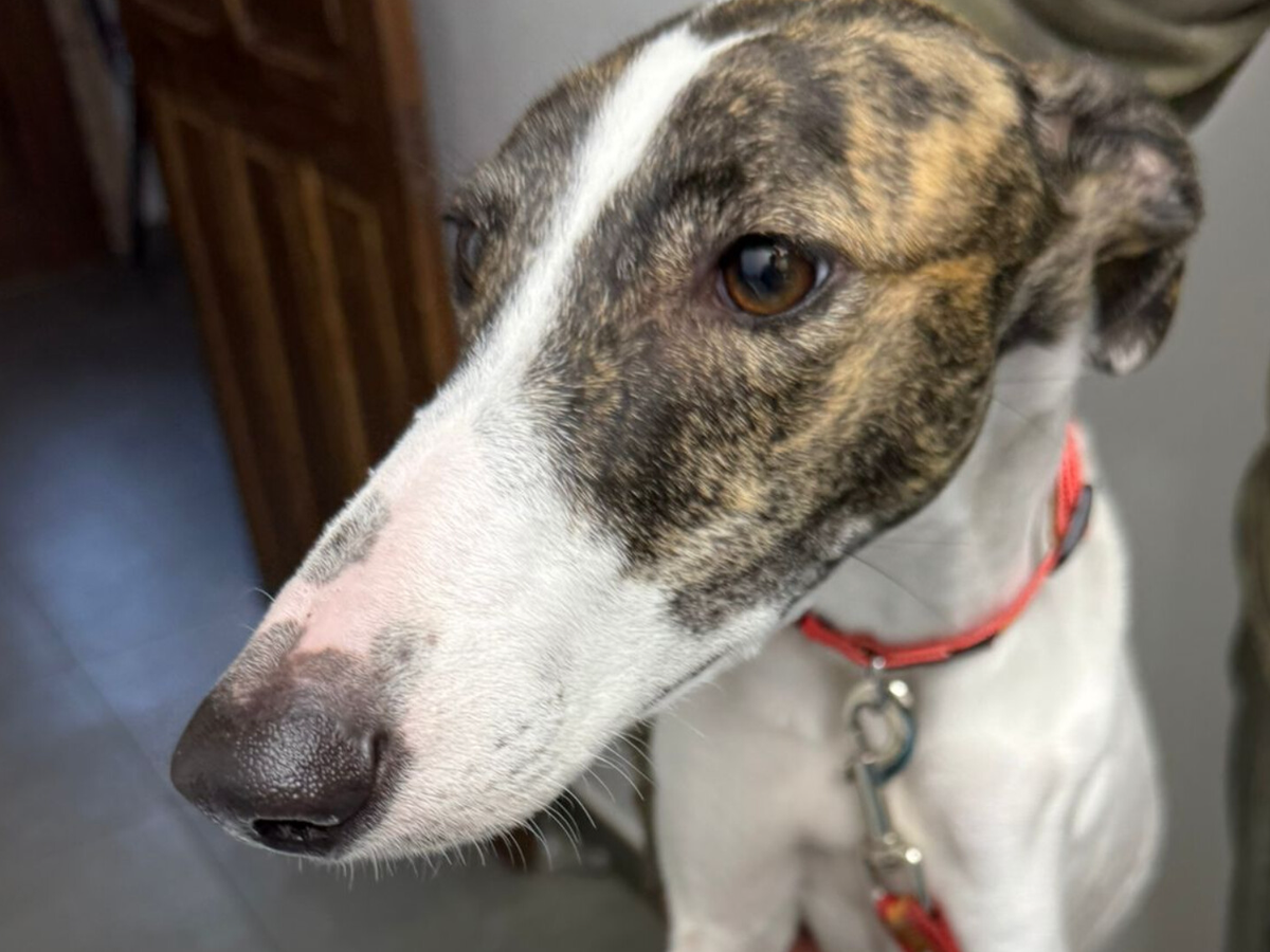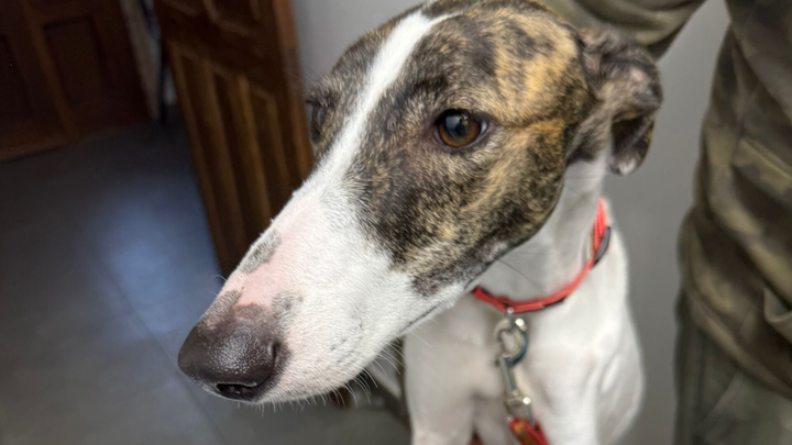 Soy una galga que fue abandonada en el monte de la Ribera Baja del Ebro… y allí me quedé, sin poder moverme, con un dolor muy fuerte en mi patita.