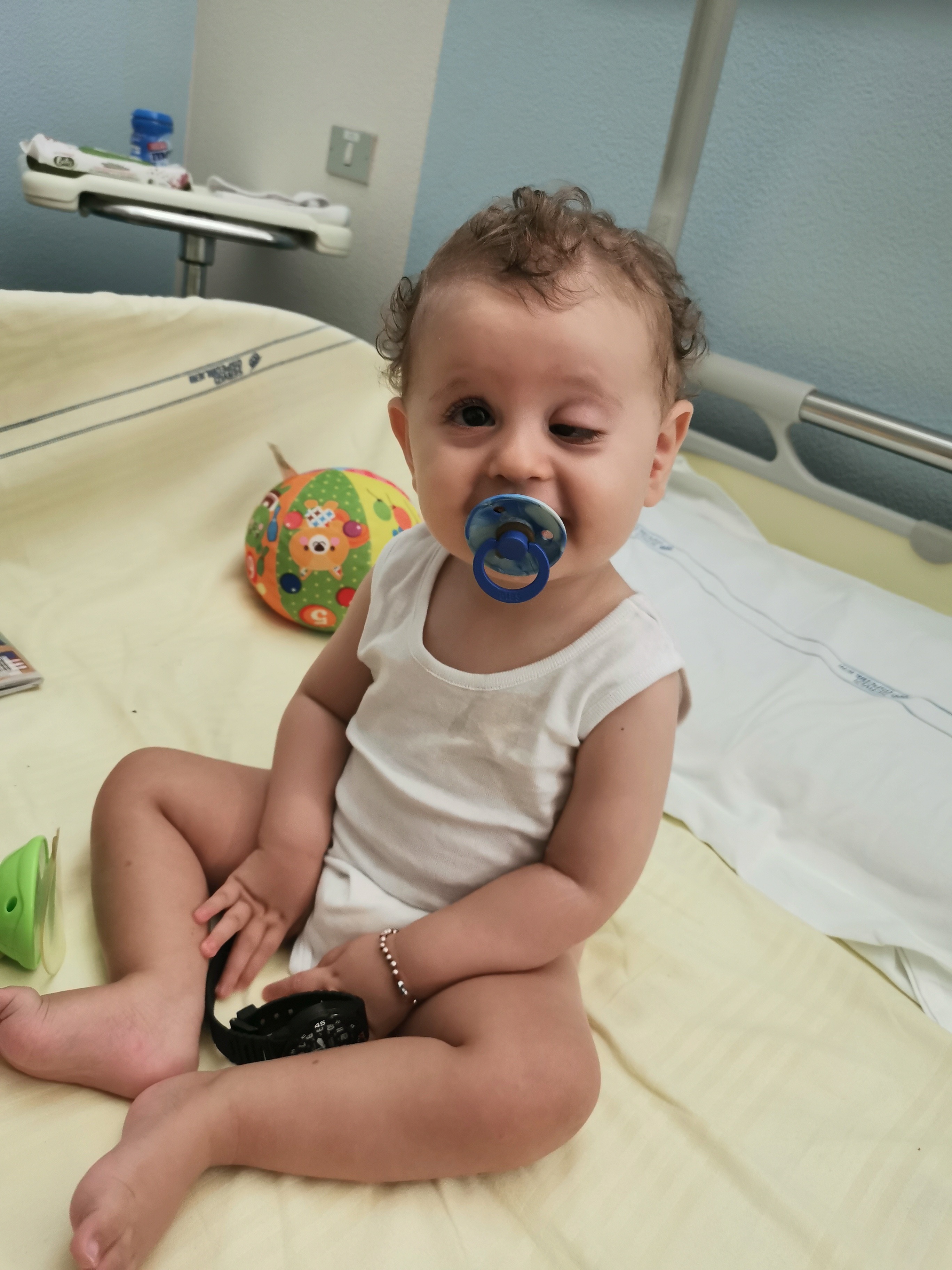 At birth, Nicola was diagnosed with ocular muscle dystrophy along with severe ptosis of the left eyelid. Despite his very young age, he has already endured three hospitalizations and two delicate eye surgeries at the Gemelli Hospital in Rome. Each procedure has been an enormous challenge, but also a step forward in the hope of improving his vision and quality of life.