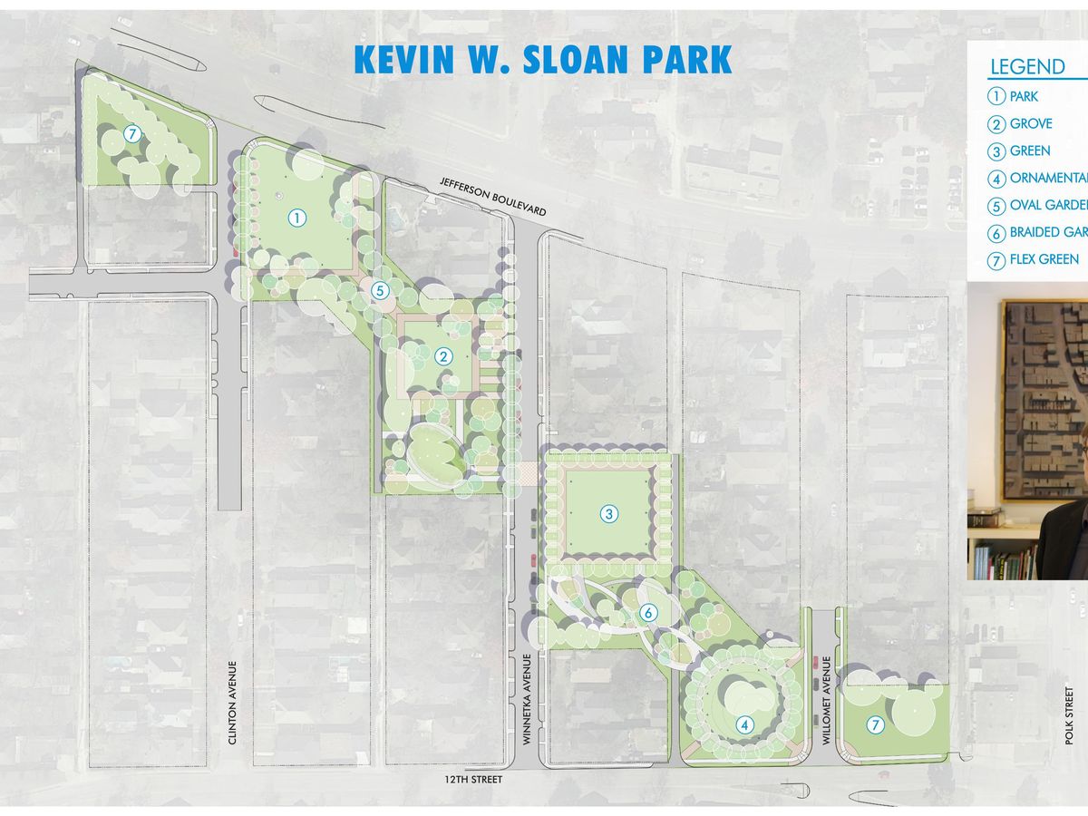 Hello, this is Diane Sloan, CEO for Kevin Sloan Studio, and Matt Stubbs, Managing Principal for Kevin Sloan Studio. Since Kevin Sloan's passing we have had numerous inquiries on if there was something people could donate to in order to honor and celebrate Kevin's life. Well, we recently were able to honor Kevin by naming the park that will be created by the removal of the Jefferson / 12th connector street after him, which will be known as "Kevin W. Sloan Park".
