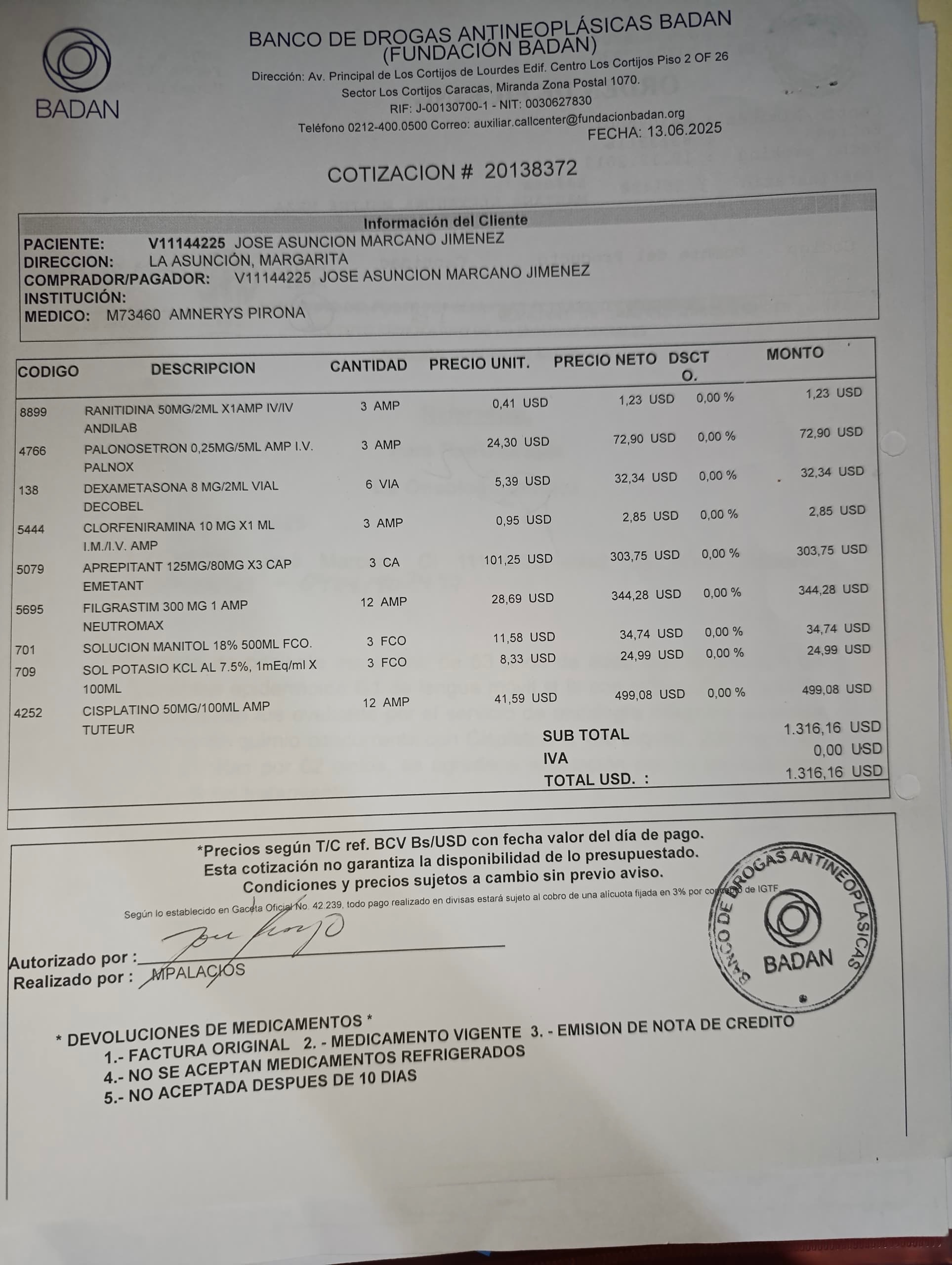 Debo someterme a 3 ciclos de quimioterapia cada 21 días. La doctora oncóloga me proporcionó la ficha del tratamiento, pero los medicamentos oncológicos son muy costosos.